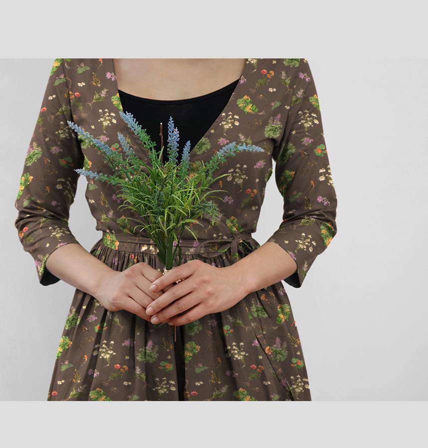 Design infomation ·The shirt dress I wore when I was a girl.You can wear wooden buttons to avoid tucking and coordinating them with braided leather boots, and it's perfect for quilting.