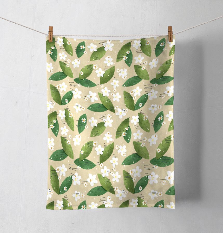| Design infomation | Lovely spring flowers, white daisies, and green leaf patterns Petals, daisies, green leaves: main design elements Beige, green, white: main colors |