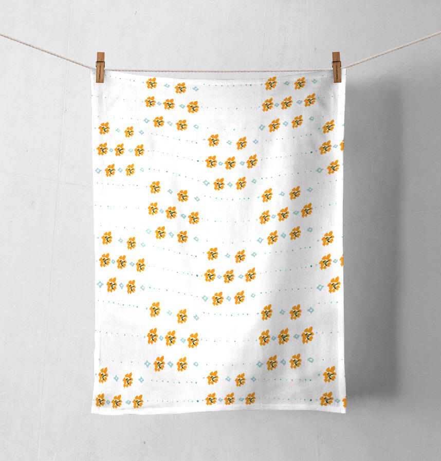 French-feeling patterns with sky lights such as orange flower stripes and dots ^^