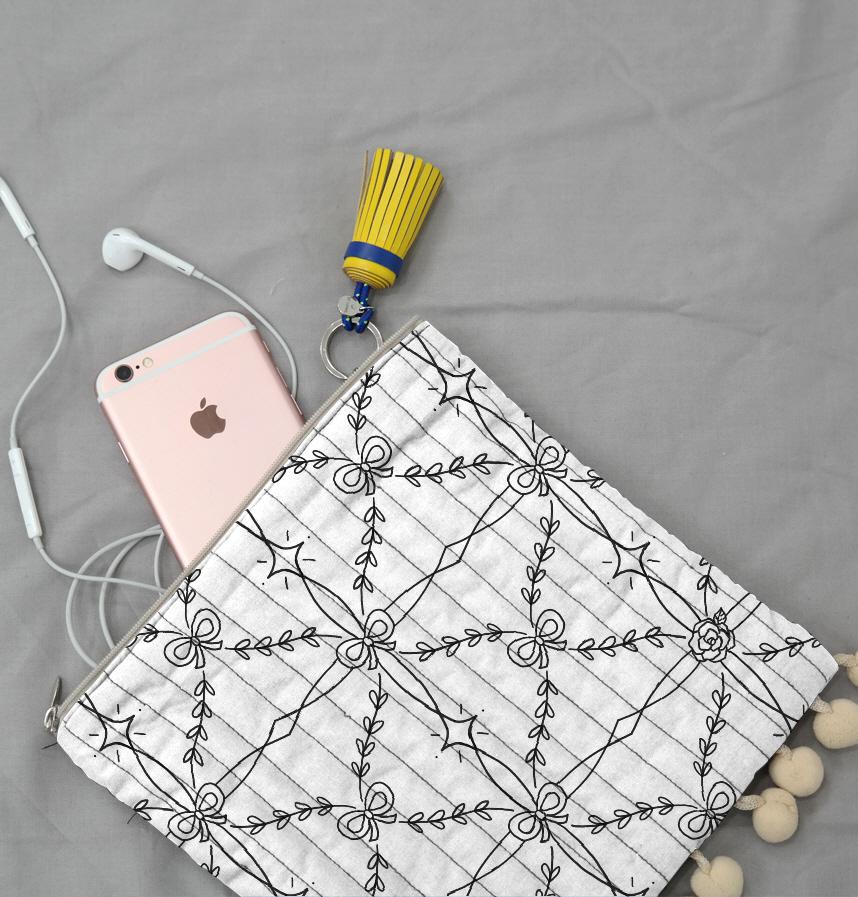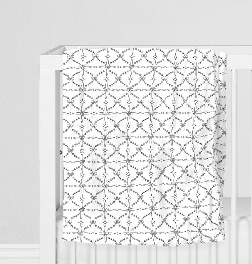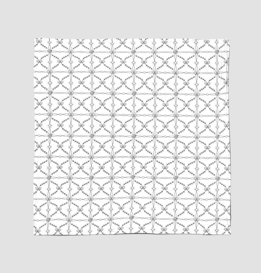 A line drawing pattern combining feminine yet elegant ribbons and rose vines.