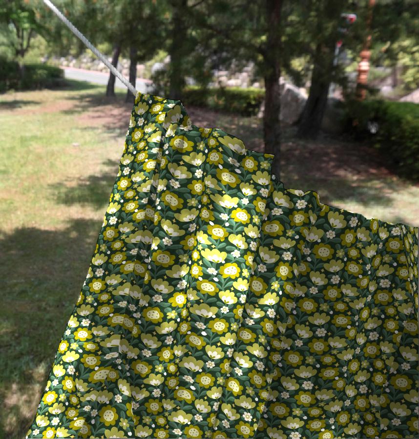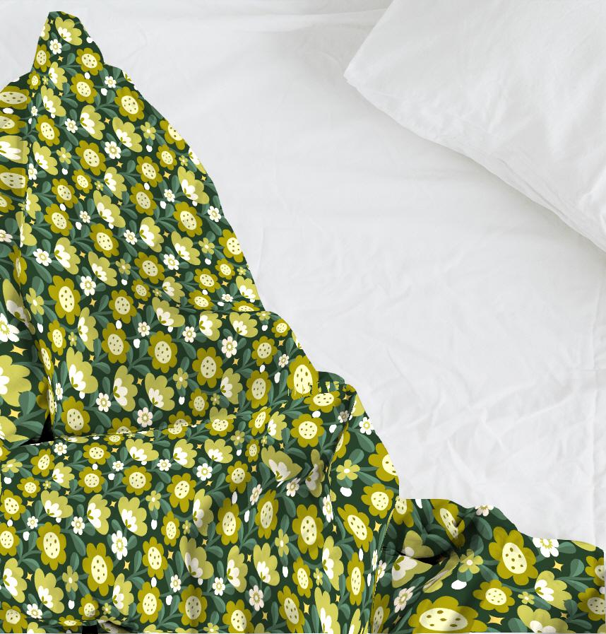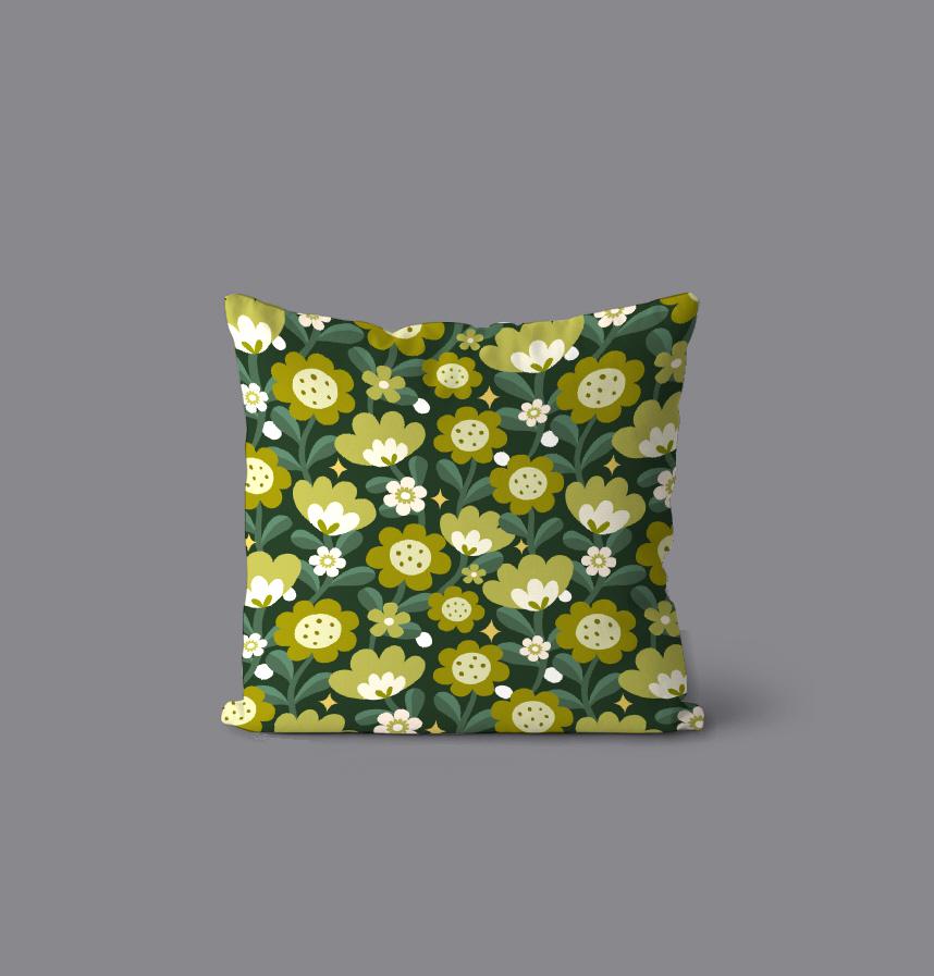 It is a harmonious pattern design of cute flowers in green tones.