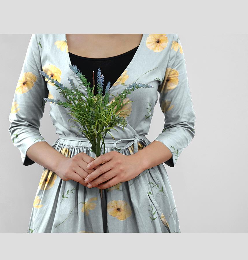 Design infomation | It has a yellow wildflower flower pattern on a blue background. |