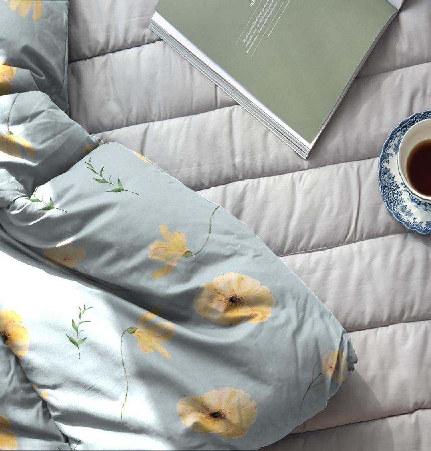 It has a yellow wildflower flower pattern on a blue background.
