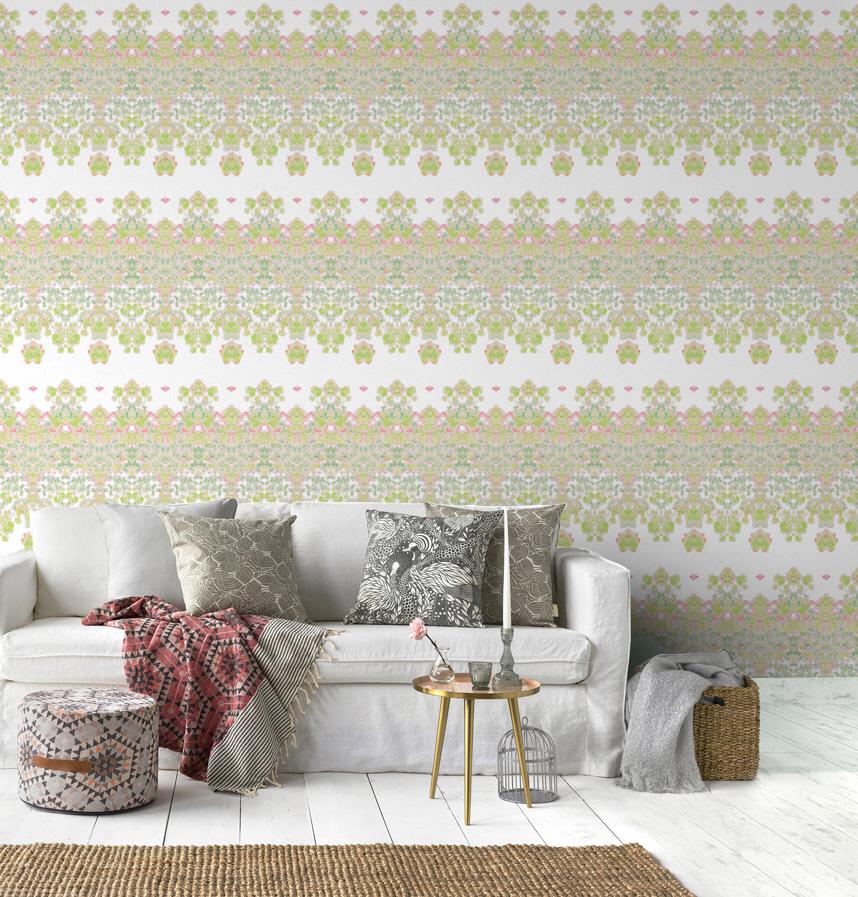 It has a border panel pattern in gentle colors.
