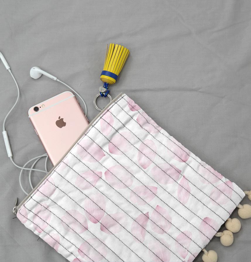 It's a spring-like pattern with illustrations of cherry blossom petals scattered all over.