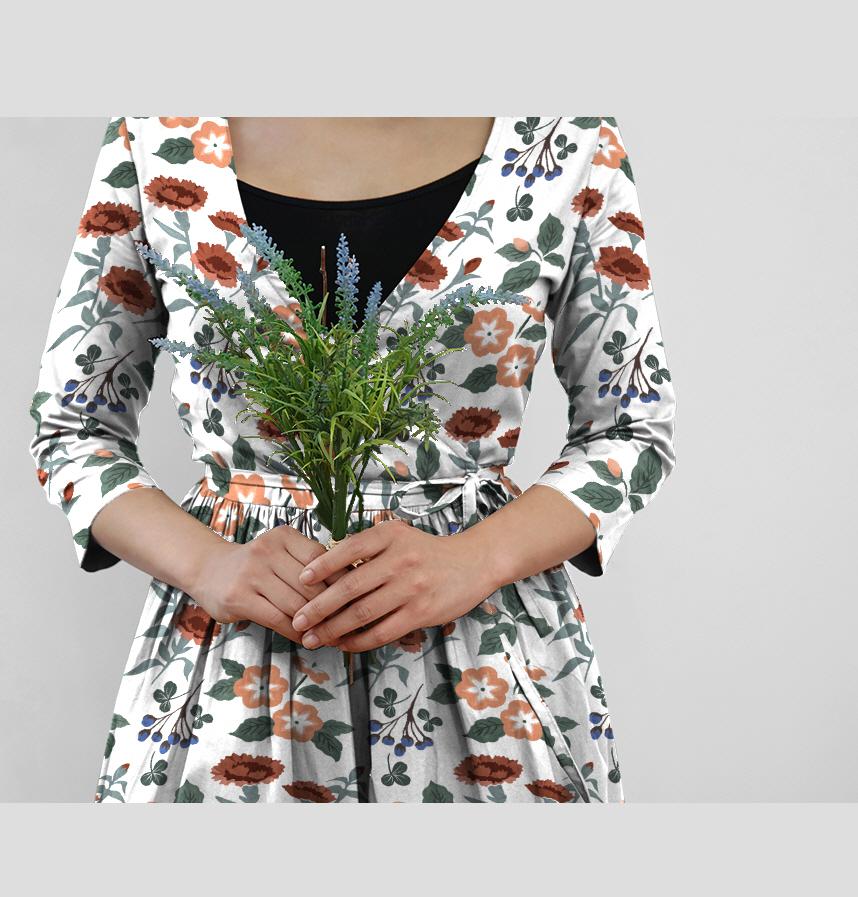 Design infomation The flowers that bloom in the garden such as carnations and impassions are randomly arranged and patterned.