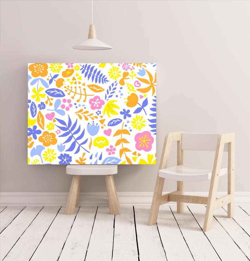 It is an illustration pattern of pastel-toned flowers and several plants.