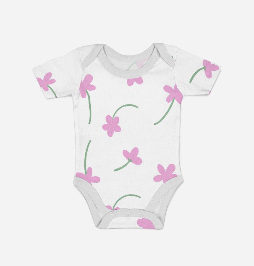 Design infomation | The unevenly placed pink petals and green stems on a white background emphasize naturalness, and the spacing is moderately relaxed for visual comfort. Thanks to its simple composition, it can be used in a variety of products, creating a warm atmosphere reminiscent of spring and flowers. |