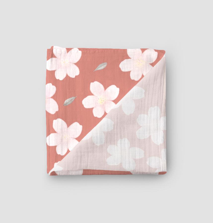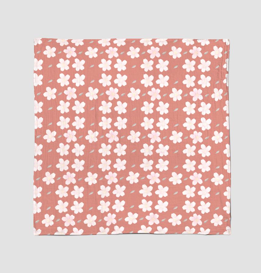 This design features cherry blossoms and cherry blossom leaves drawn and arranged in light colors.