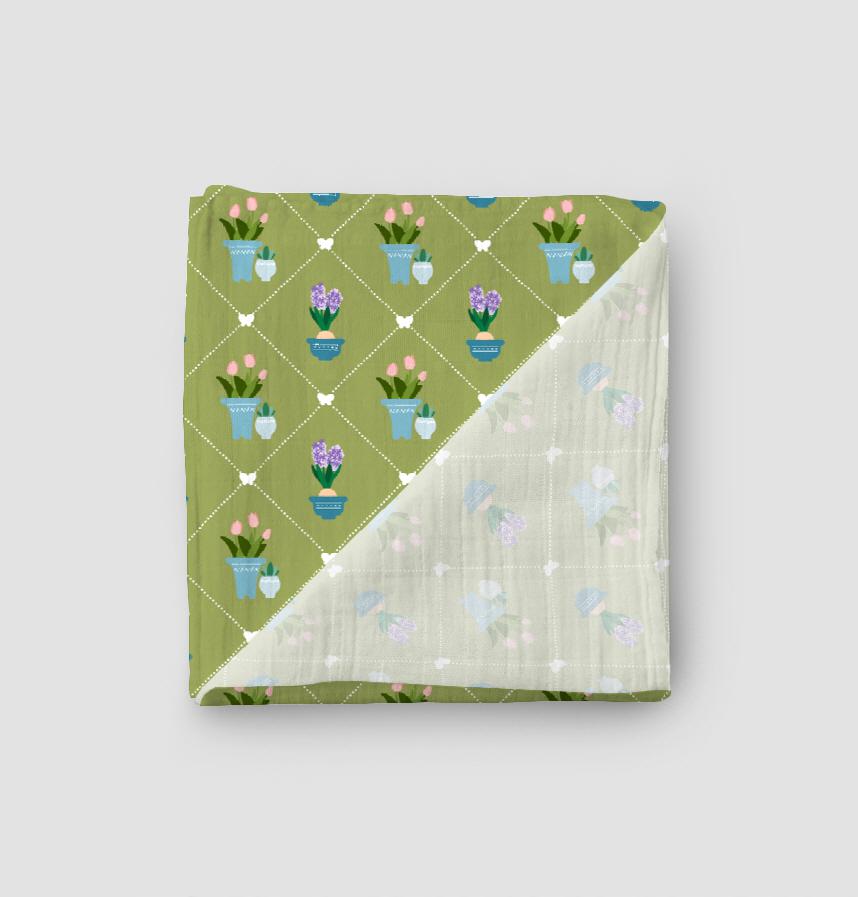 This pattern is inspired by a flower pot filled with cute bulbous plants (tulips and hyacinths).