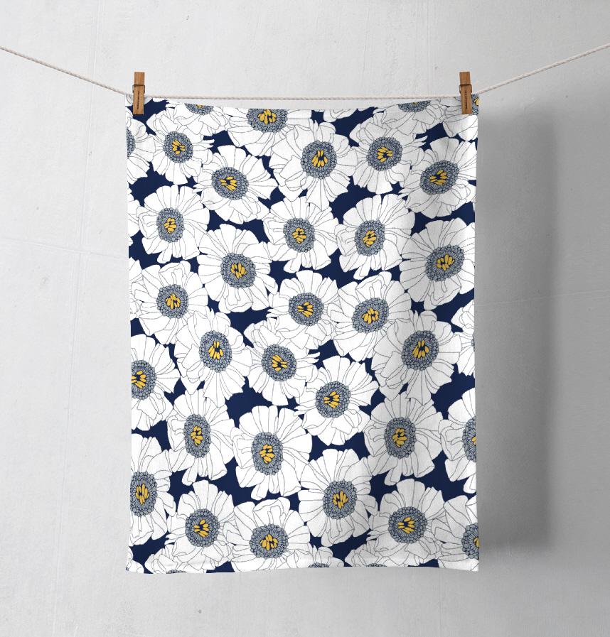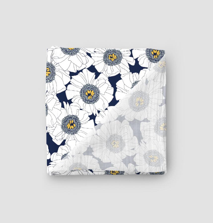 Design infomation Blooming daisy on navy with hint of golden yellow
