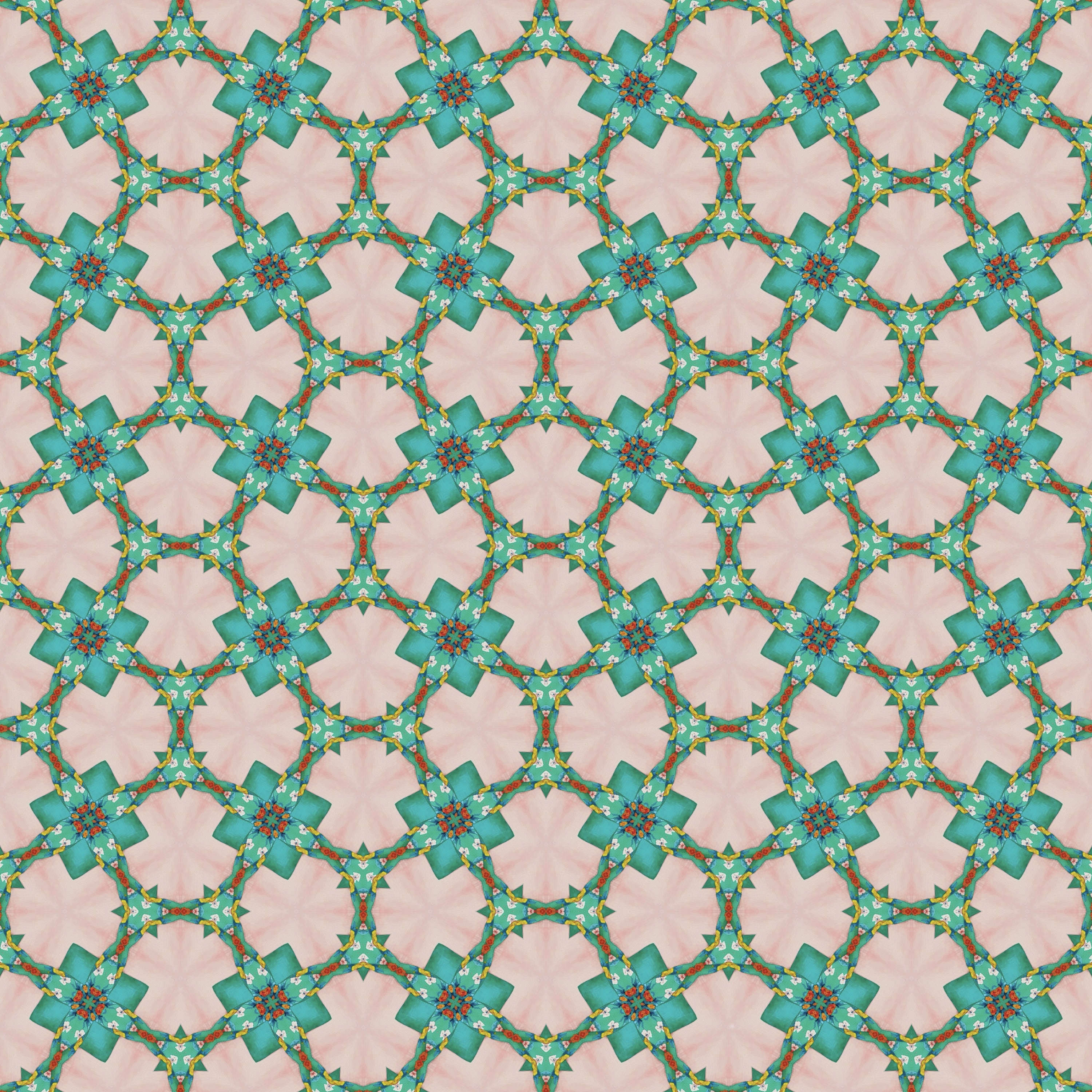 | Design infomation | This pattern expressed the little joy and the power of recovery that rose even in the midst of repeated moments of everyday life. Although one flower shape is arranged in an orderly manner in a constant structure, each element is subtly different in color and size. This symbolizes that we all live in the same space but have different personalities and stories. The center circle refers to the heart, center, and breathing, and the structure that spreads out like a petal around visually represents expansion, growth, and connection. Freedom in rules, movement in stability, and beauty found in repetition—are at the heart of this pattern. The vibrant color combination captures recovery, hope, and warmth. Red tones represent vitality and passion, pink represents love and warmth, cyan represents balance and peace, everyone harmonizes. This pattern was aimed at an emotional design that lit up the space and made the viewer's mind comfortable. It is not just a pretty pattern, but a work that presents small comfort and joy in everyday life. It is optimized for various applications such as cushions, rugs, bags, posters, bedding, and fabric prints, and is a sensitive emotional pattern that becomes a point in any space. |