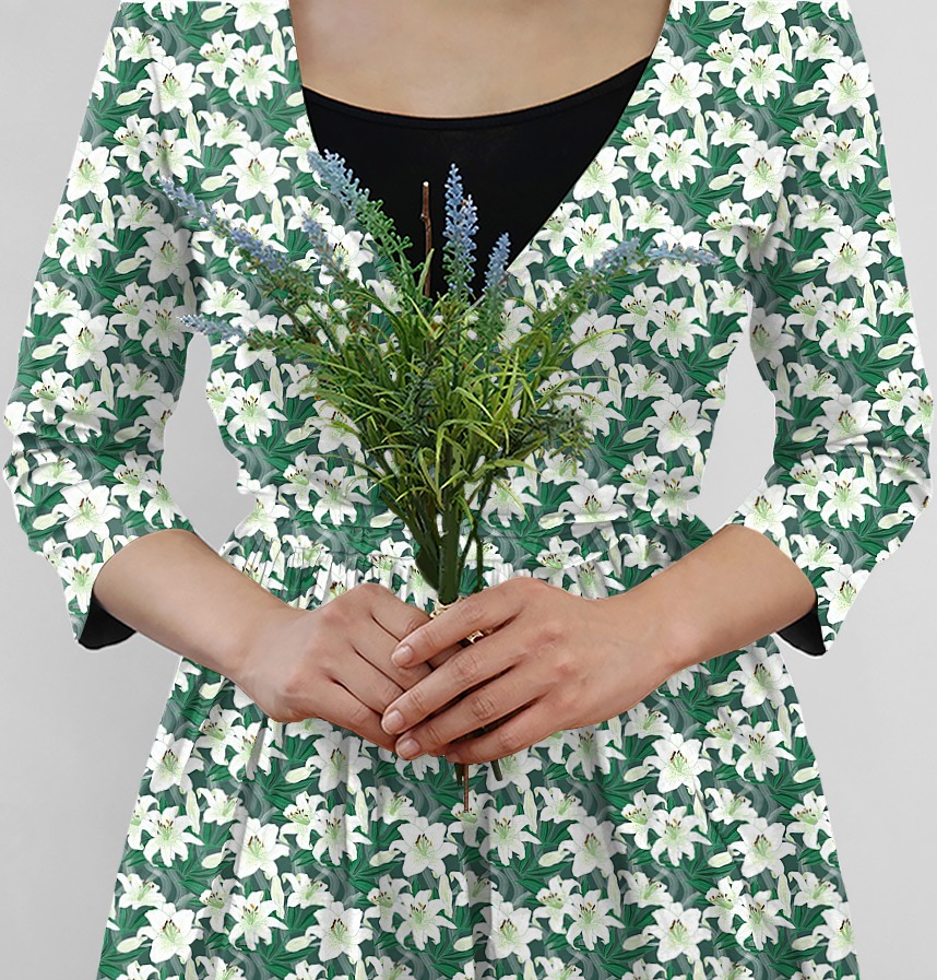 Design infomation It is a pattern designed with a motif of transparent and clean white lilies.