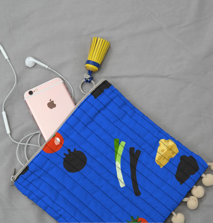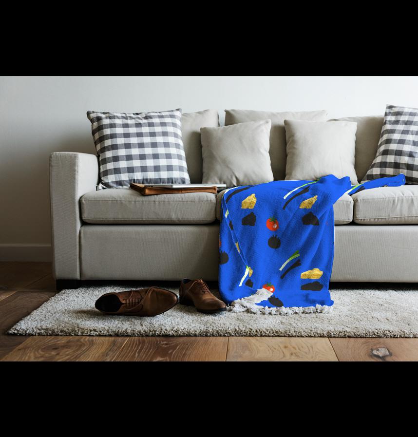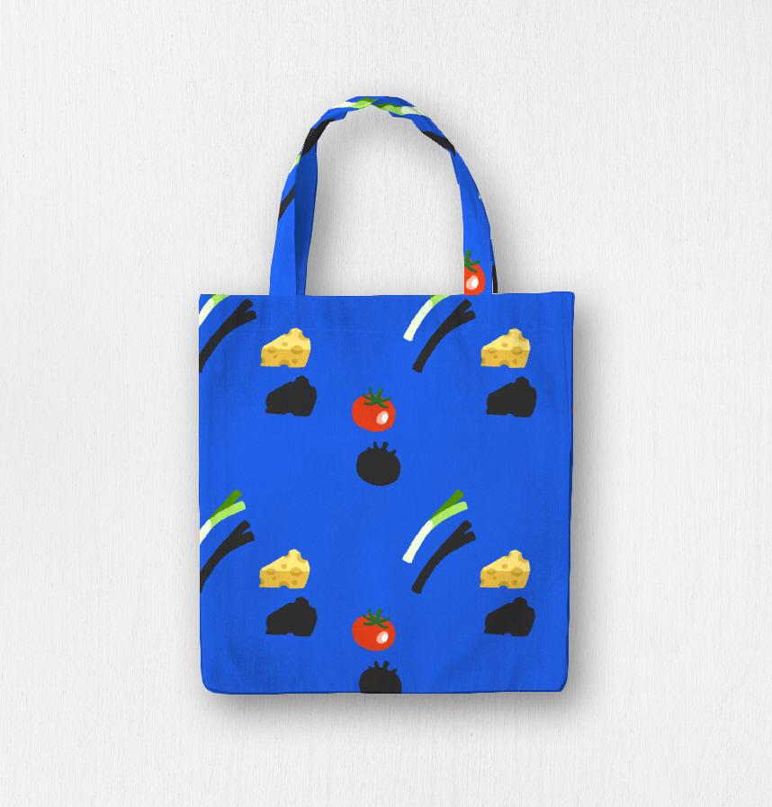 It's a cute yet unique design featuring green onions, tomatoes, and cheese!