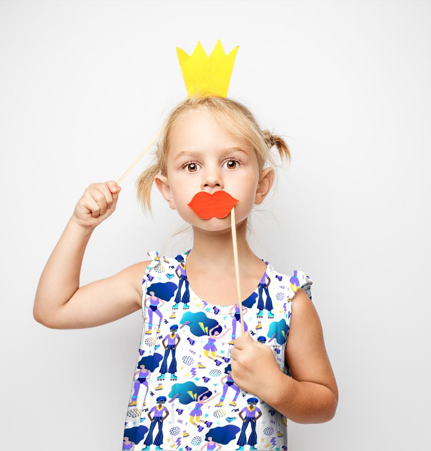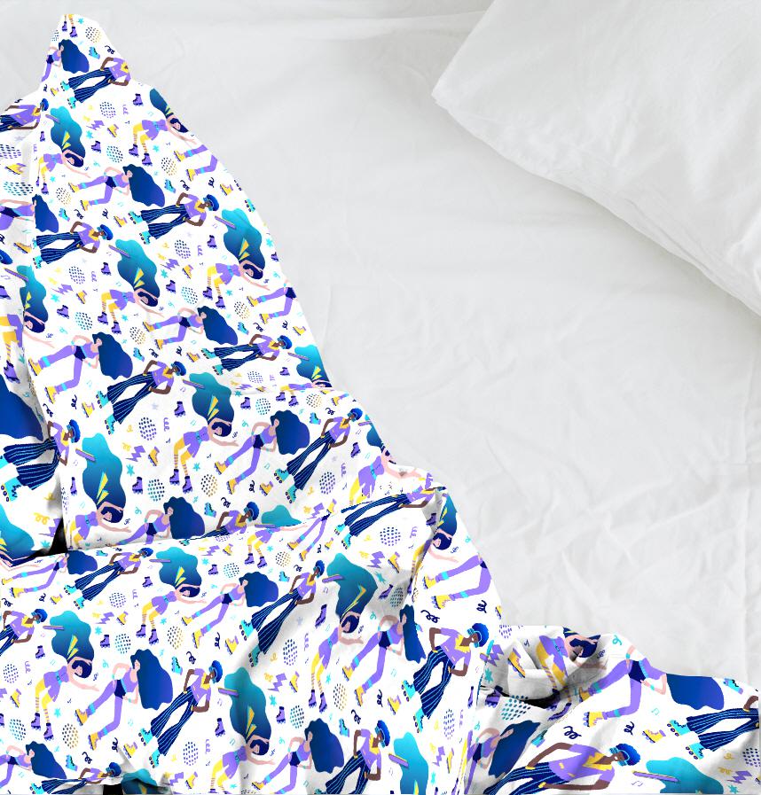 This design is patterned with colorful, retro elements.