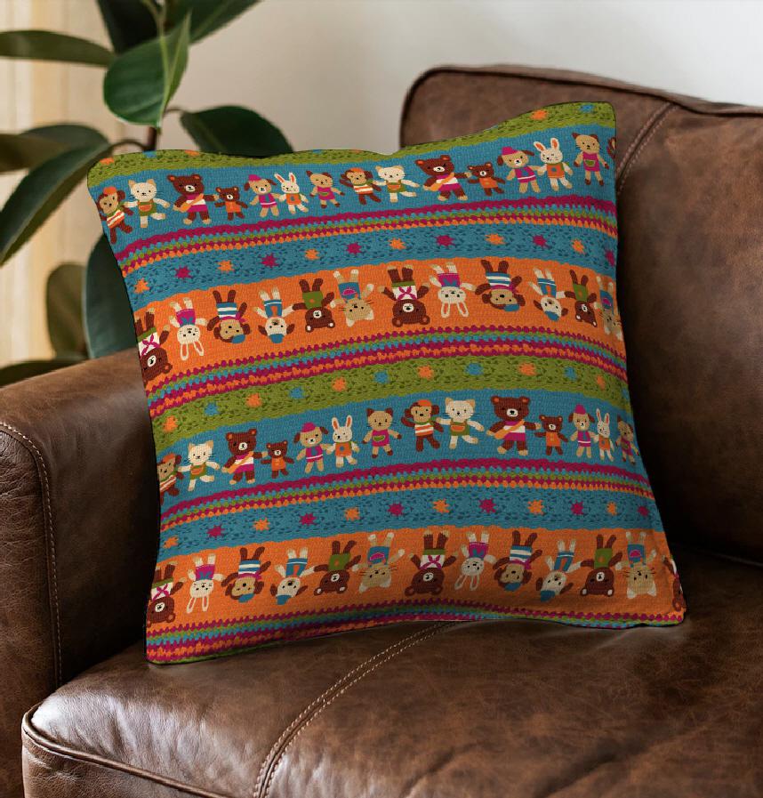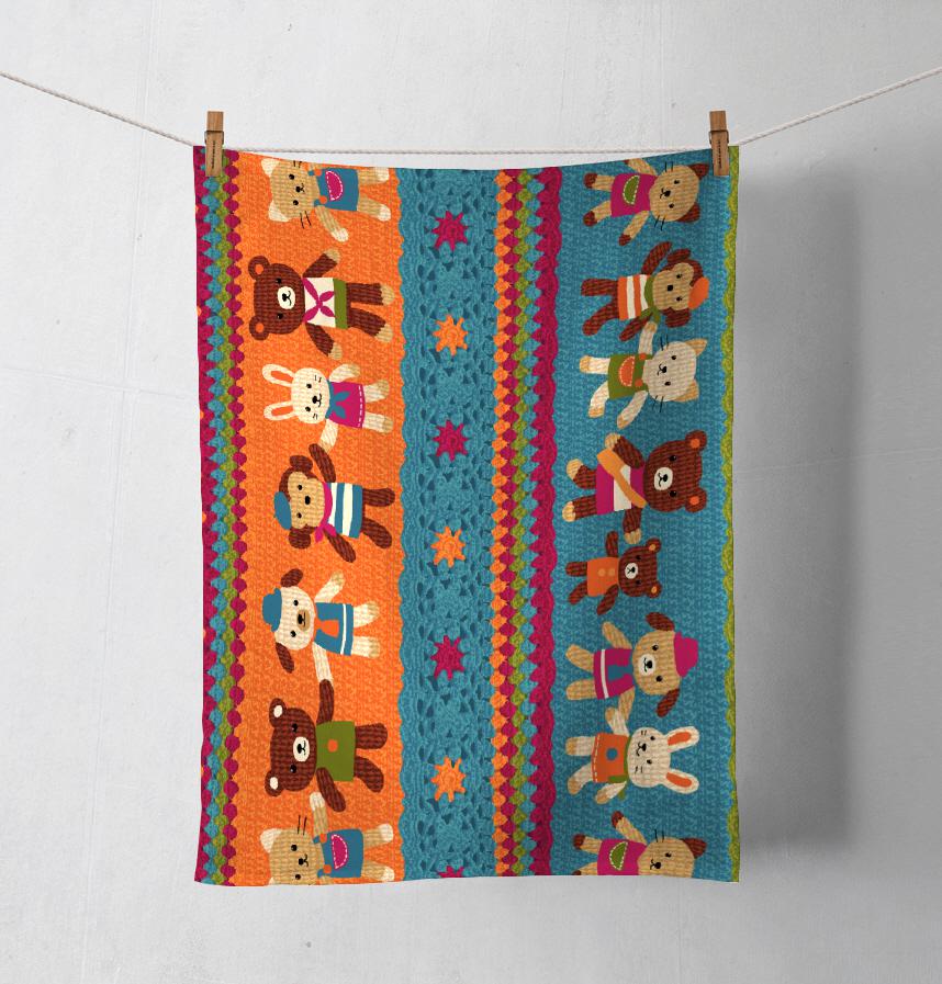 This pattern uses a knitted texture. The animals are lined up together in a cute way. How about using it as a bag for your lessons?