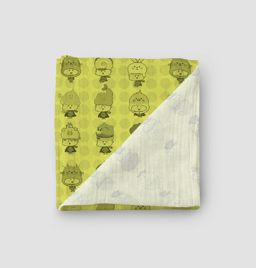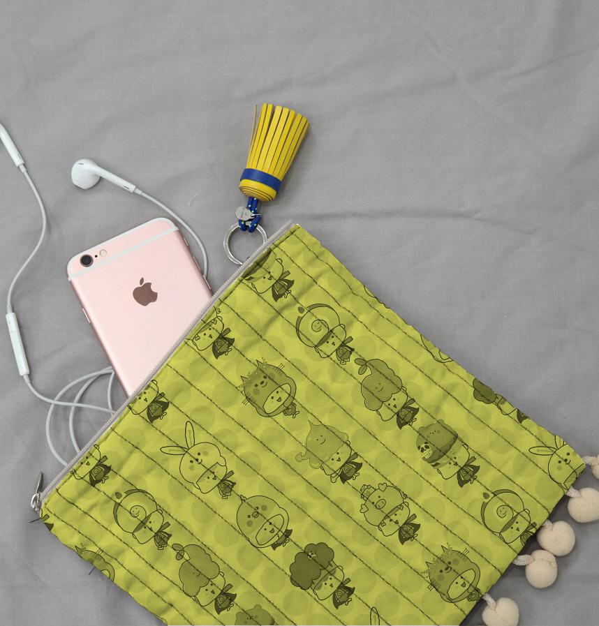 Monotone characters are arranged in the background of yellow and black dots.