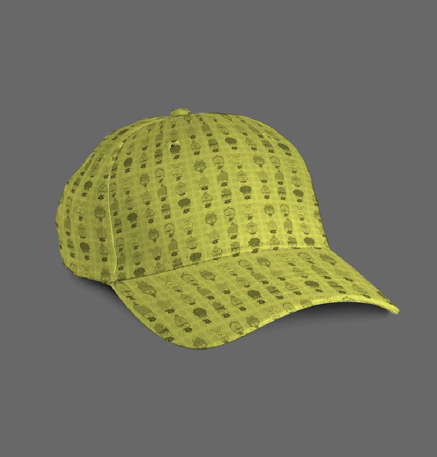 It is a vintage-style design featuring monochrome characters arranged on a yellow and black dotted background.