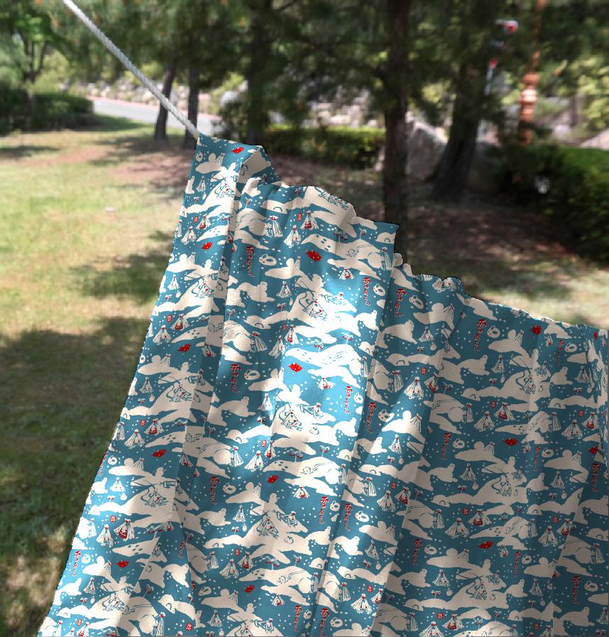 Design infomation | Yukiko's design with the image of white snow on a blue background. |