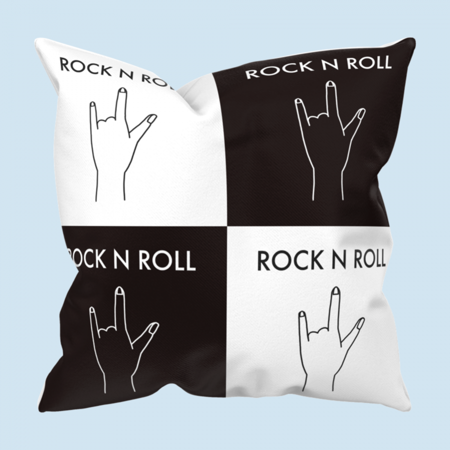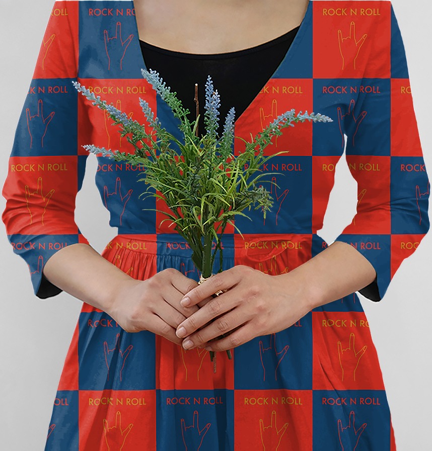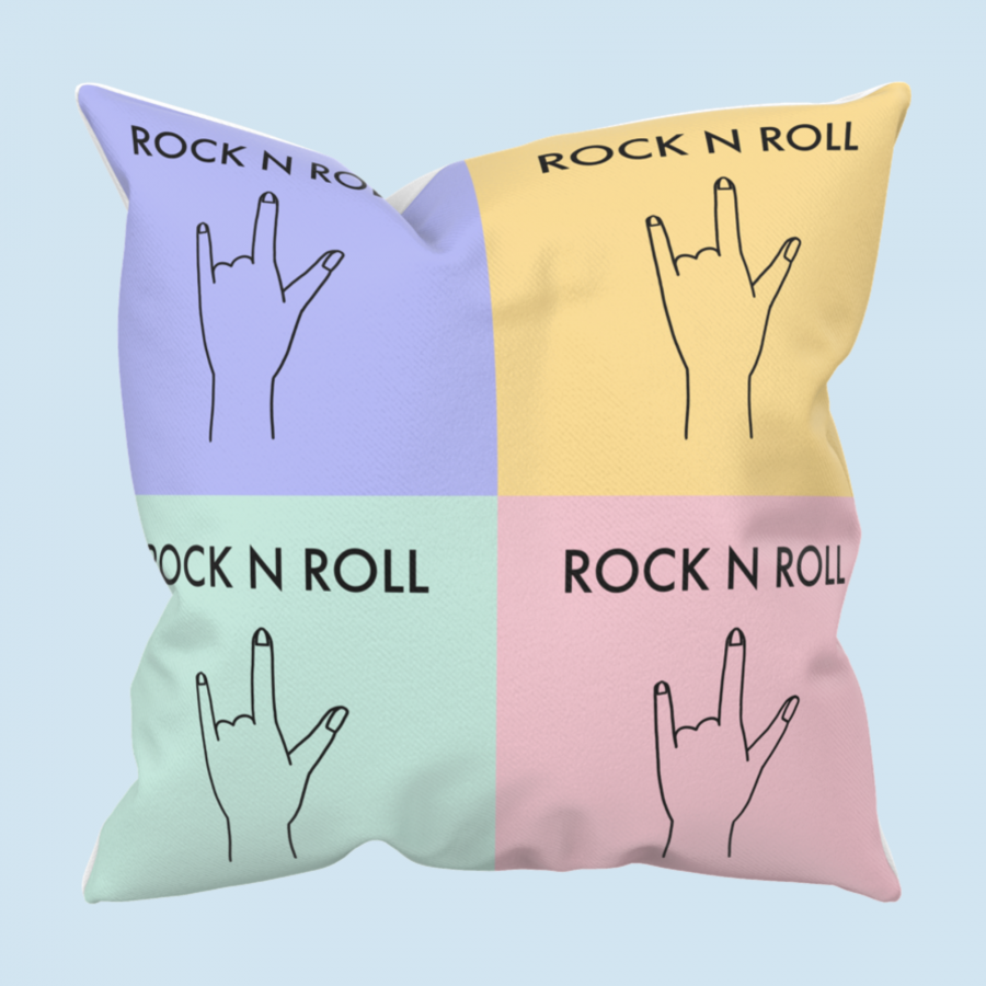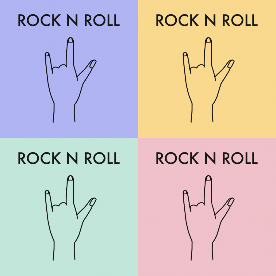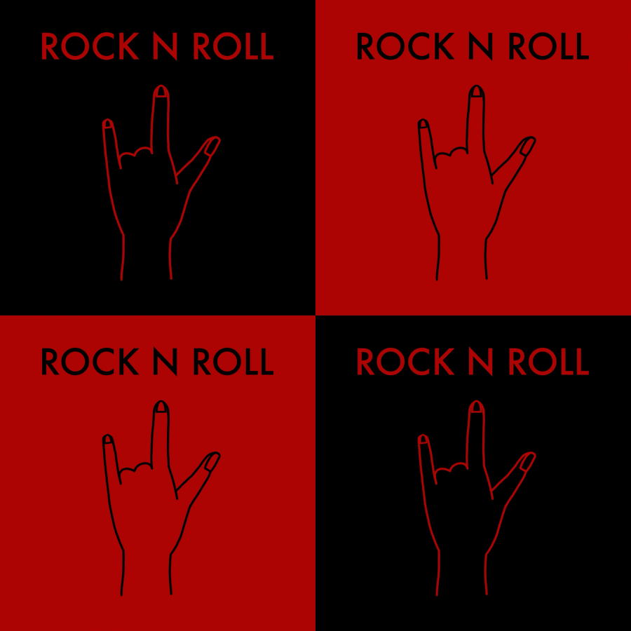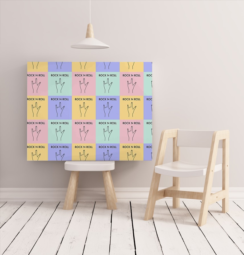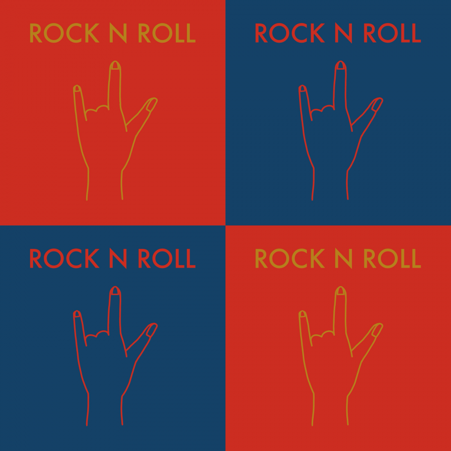 Rock and roll hand sign pattern with strong color contrast