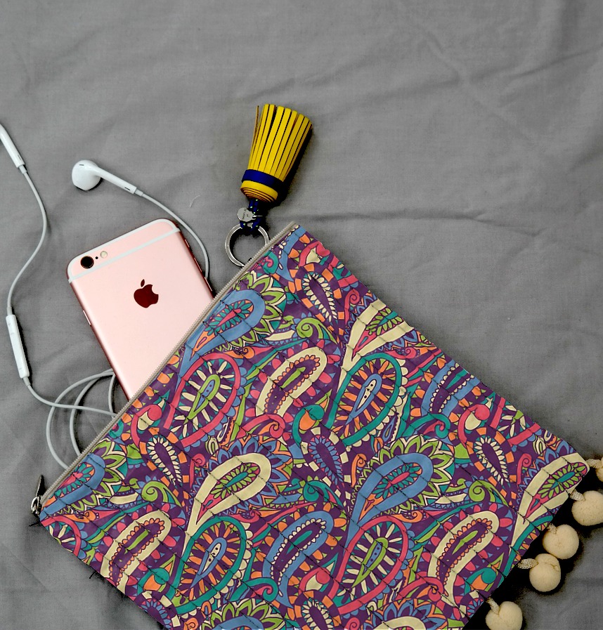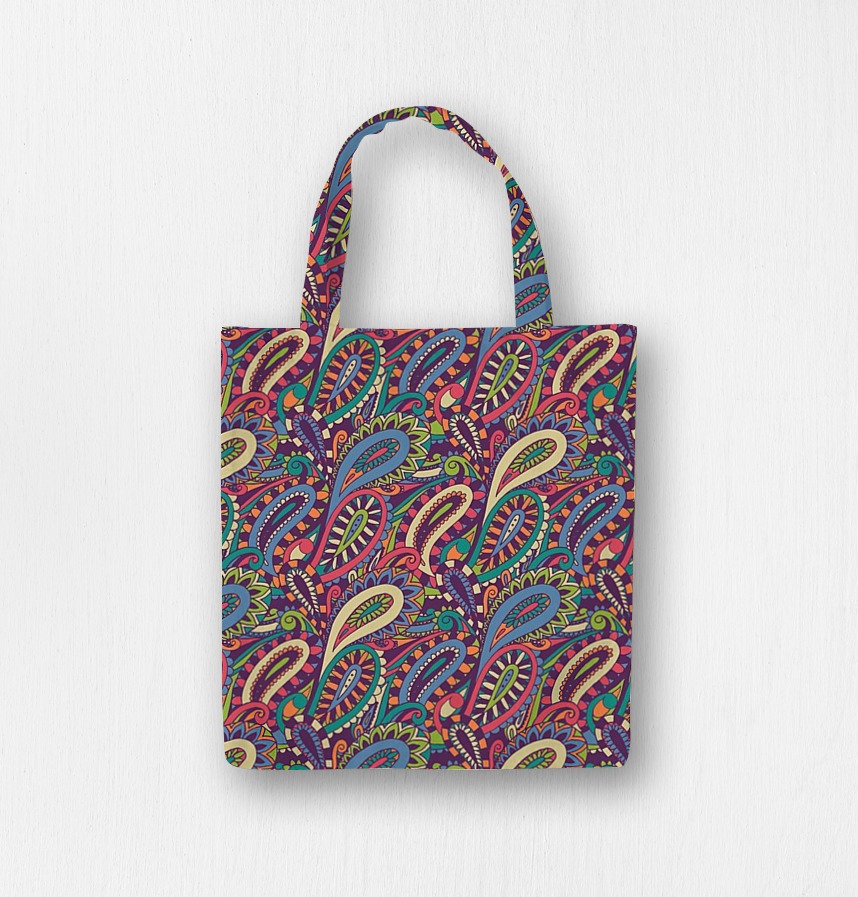 A dynamic all-over print featuring comical and cute overlapping paisley patterns!