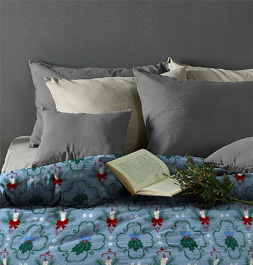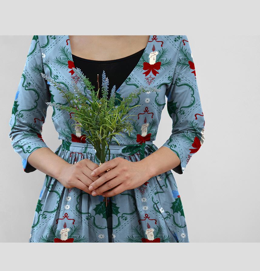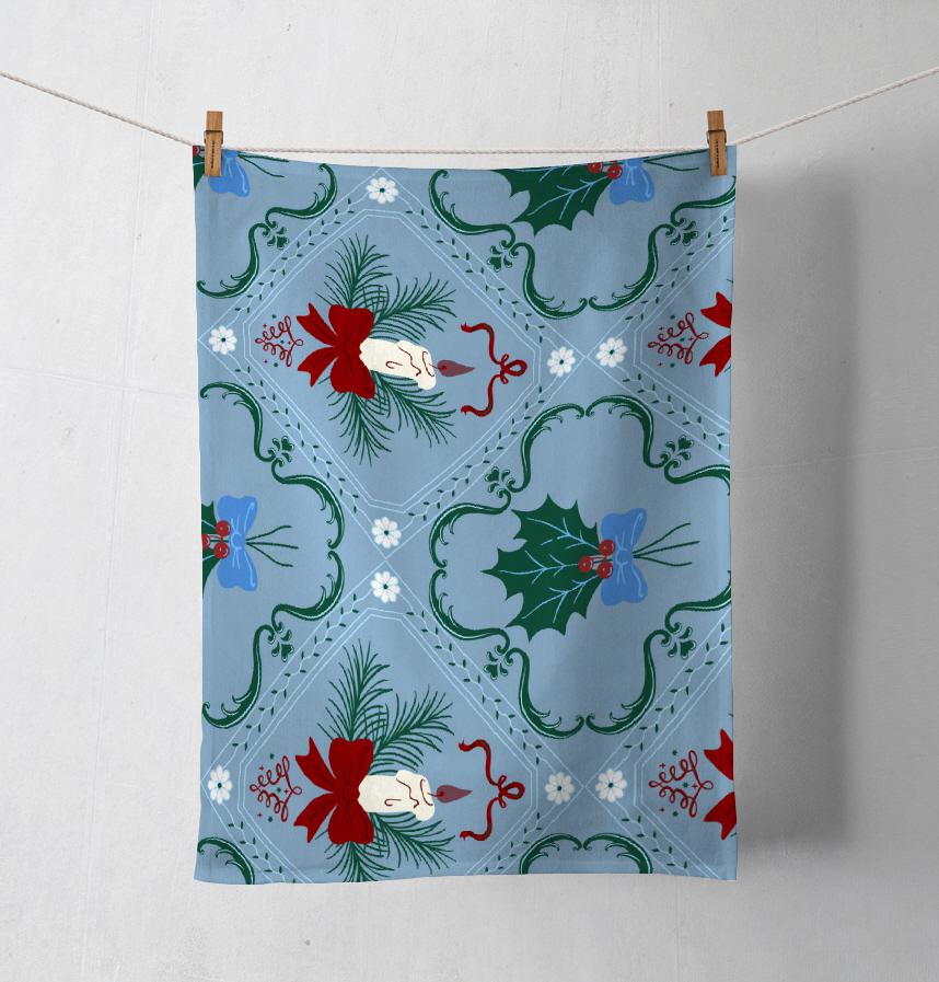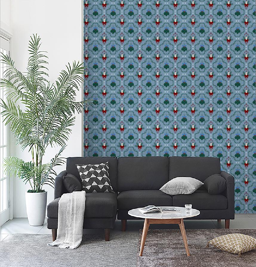 It's a vintage-feeling pattern decorated with Christmas fruits, leaves, and candles.