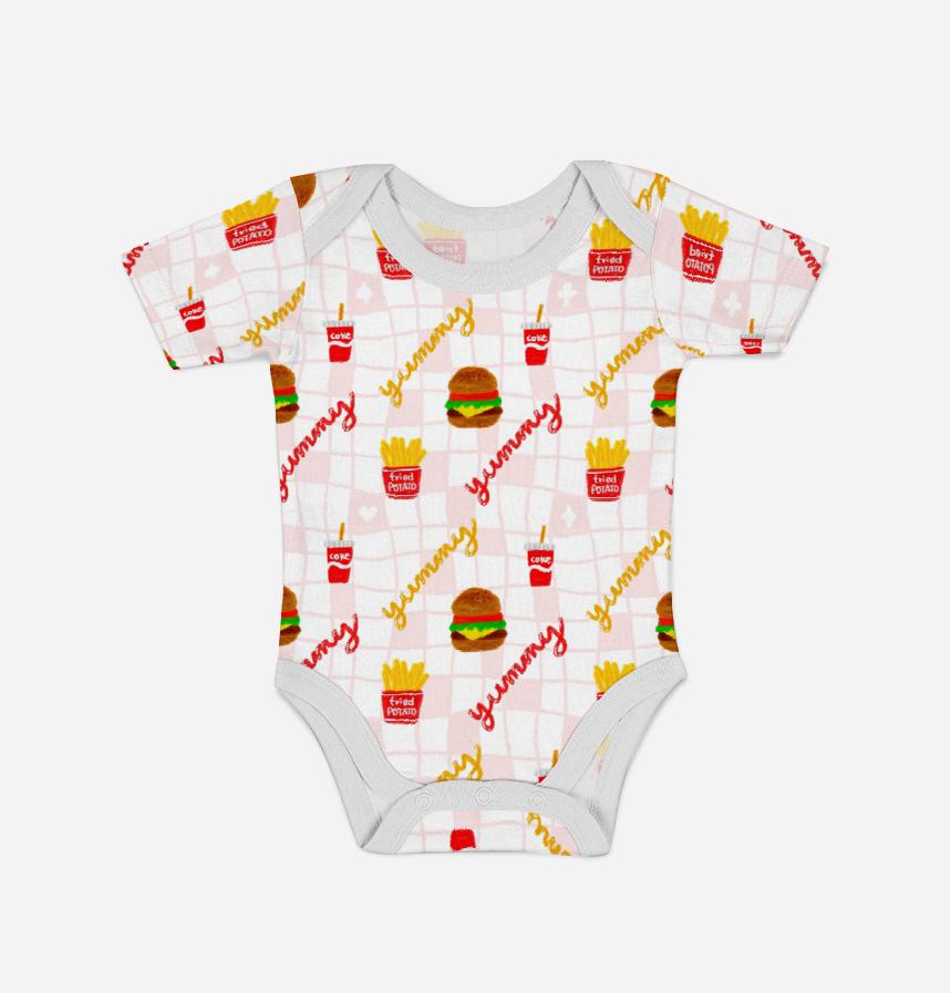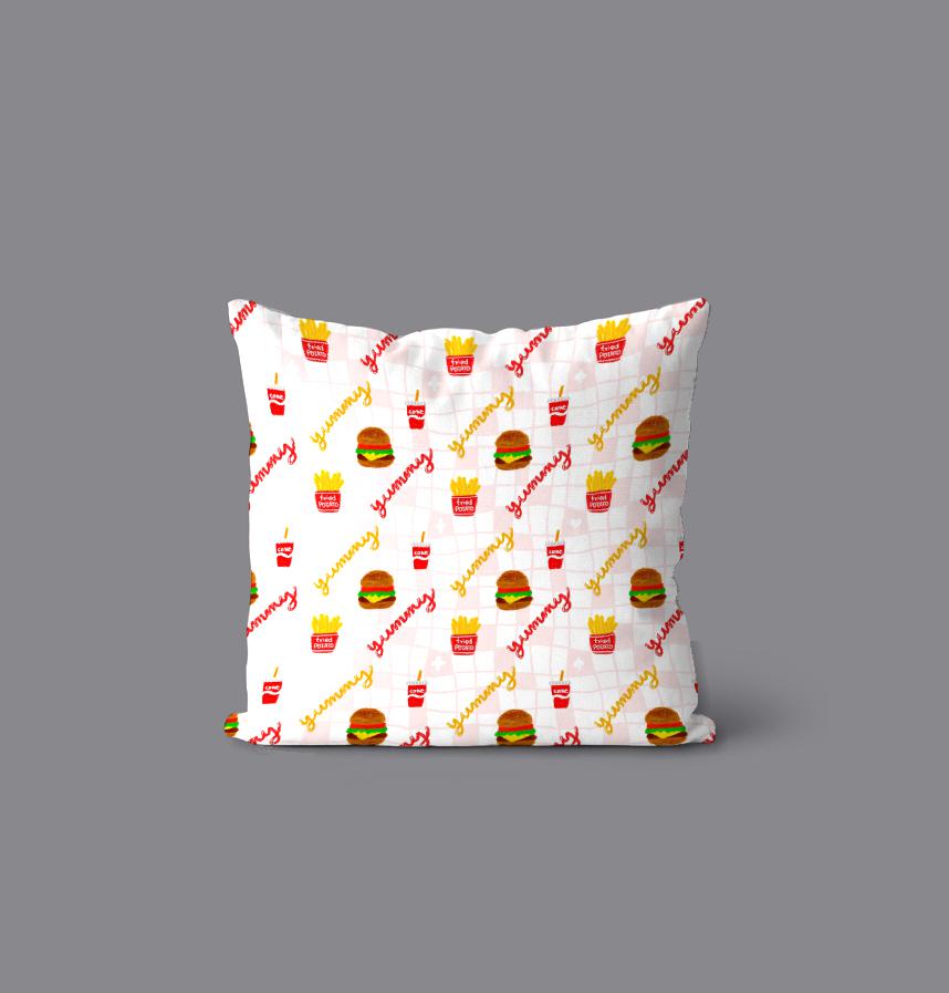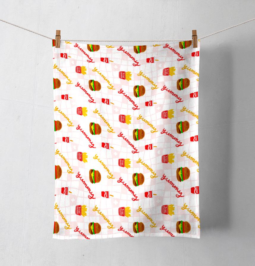 Cute burger, french fries, and cola pattern with a kitschy feel