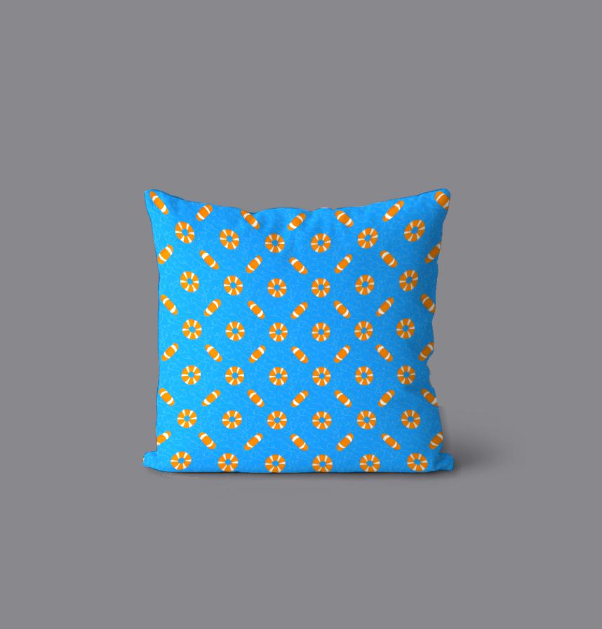 Design infomation a summery pattern of orange-striped tubes floating in the sea