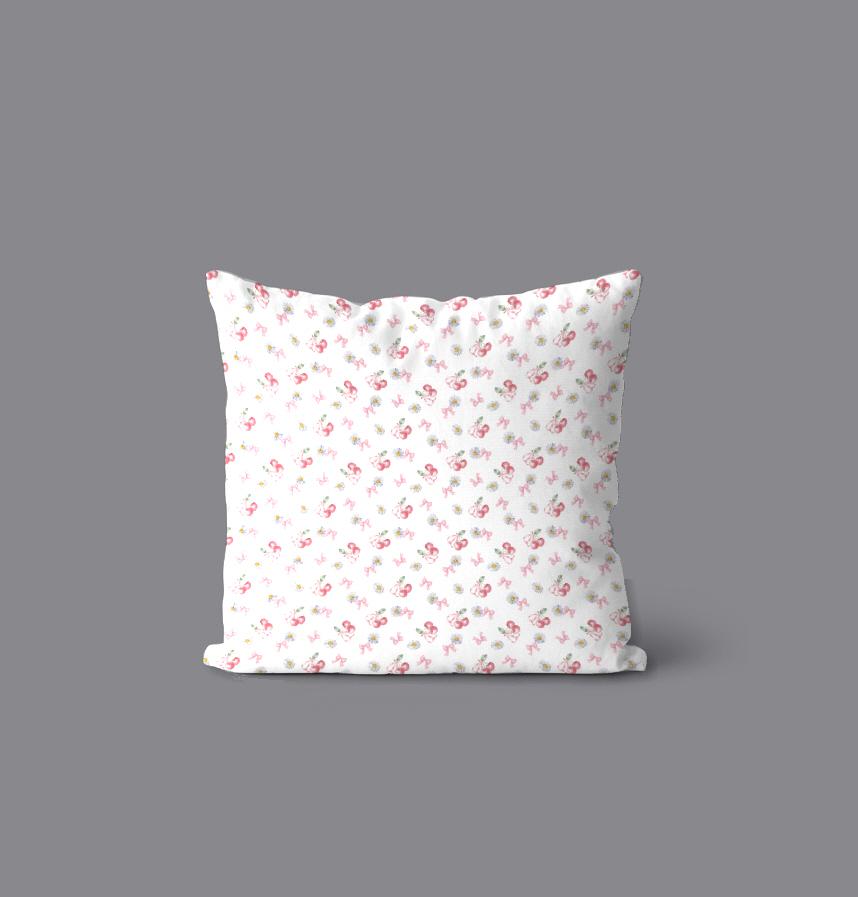 A seamless design with cherries and ribbons.