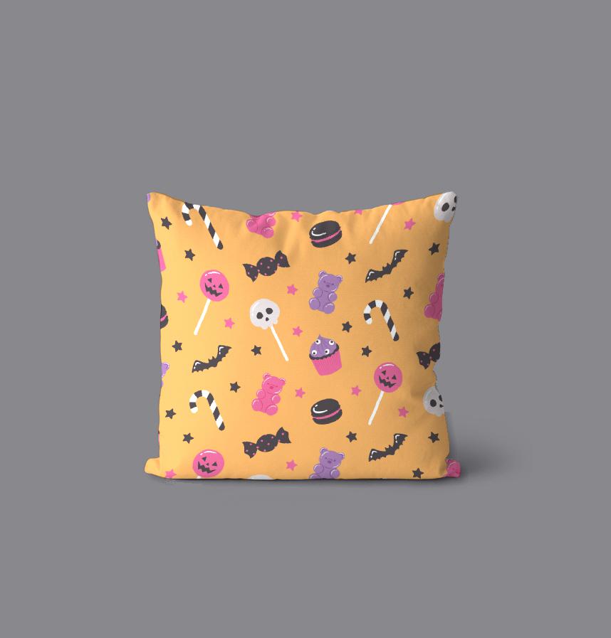 Halloween candies and cakes seamless pattern.