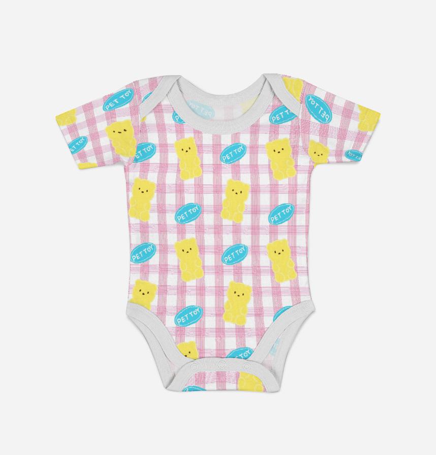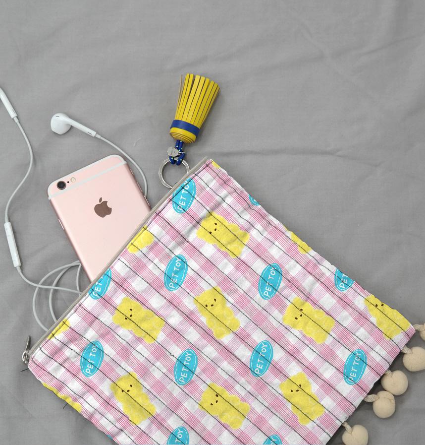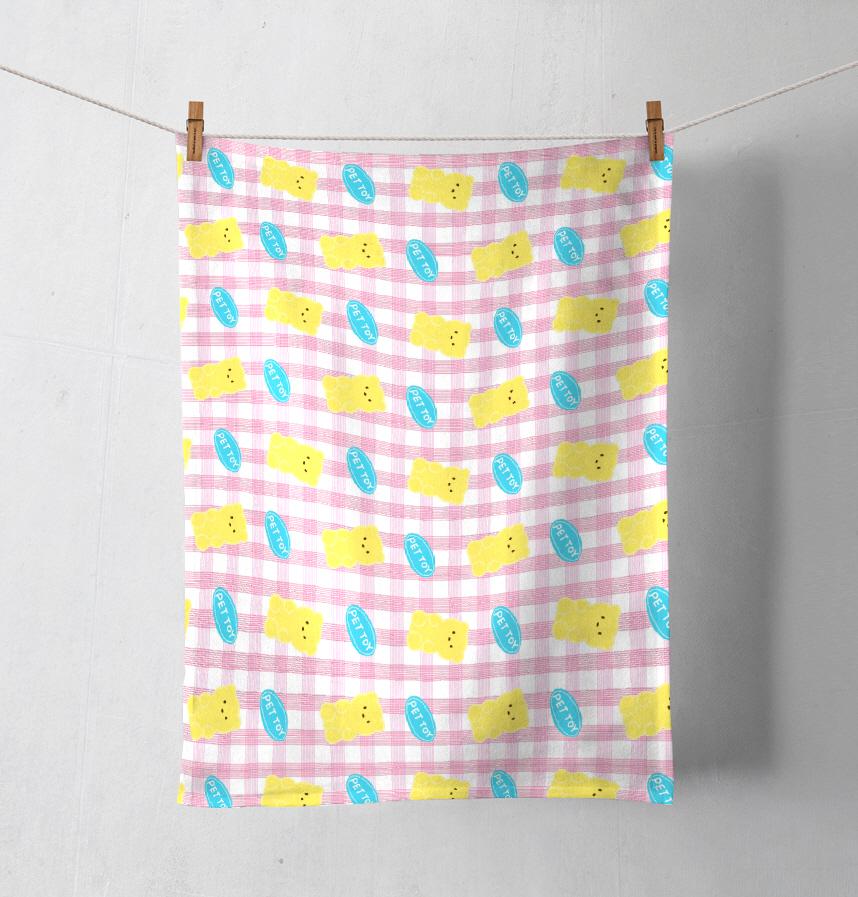 The yellow teddy bear in the pet toy is drawn cutely and the pink-toned check pattern is added to give it a cute and refreshing look.