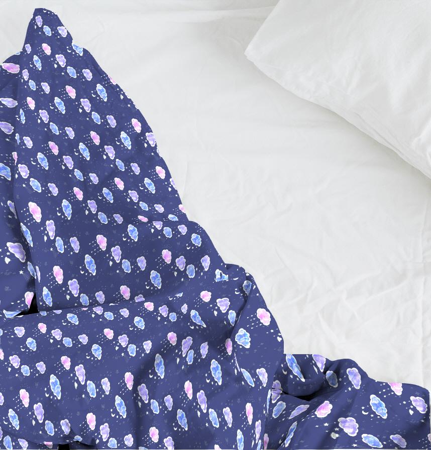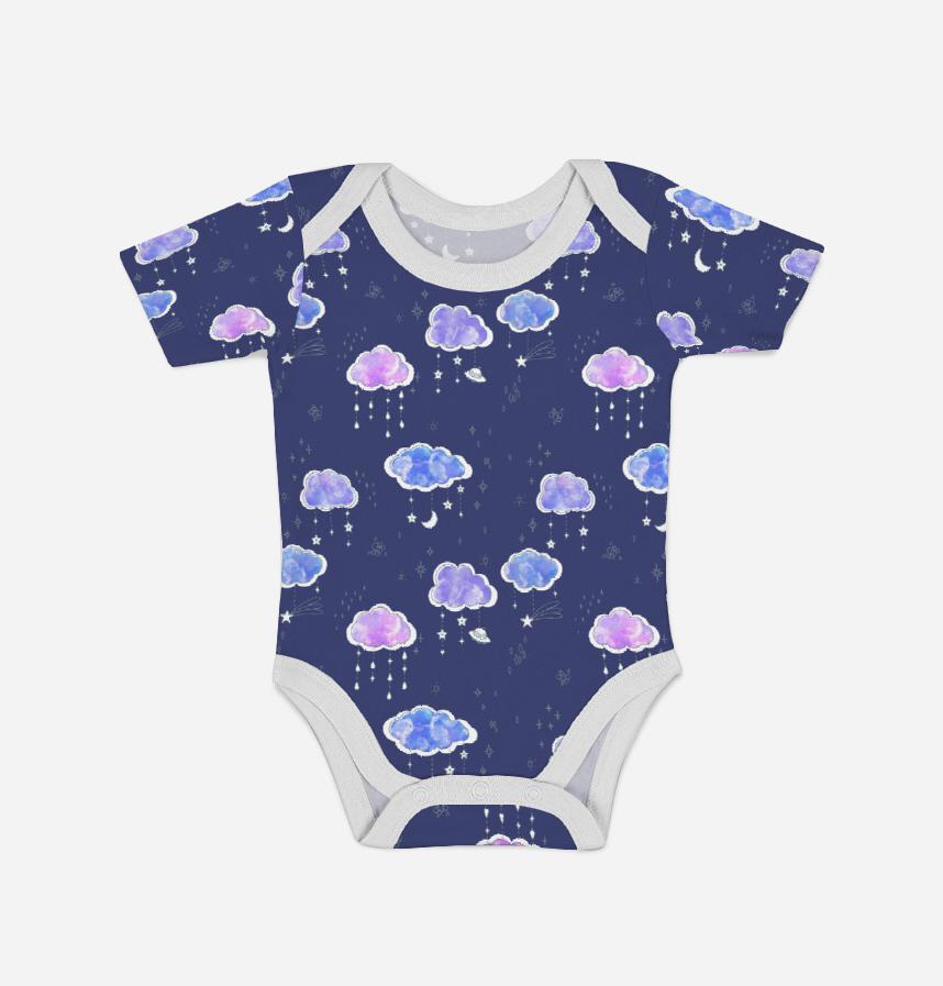 A fancy sky with lots of sparkles and watercolor-style clouds.