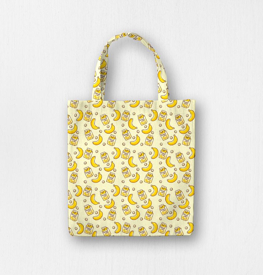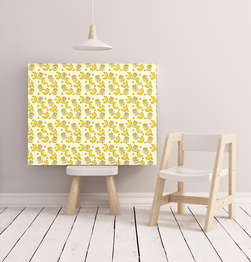 Design infomation A banana milk box and a yellow banana are repeated on a fresh yellow background. Pleasantly drawn banana milk boxes and ripe bananas are arranged throughout the pattern, and small pieces of banana are added as points to add a more cheerful atmosphere to the pattern. The banana milk pattern gives a lively and warm feeling, and it is a good design to apply to various props and fabrics.