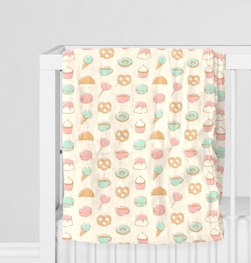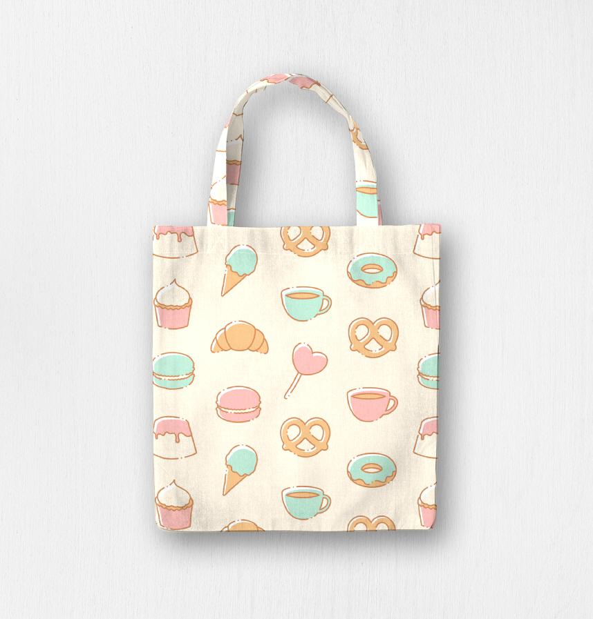 A pattern of various sweet snacks.