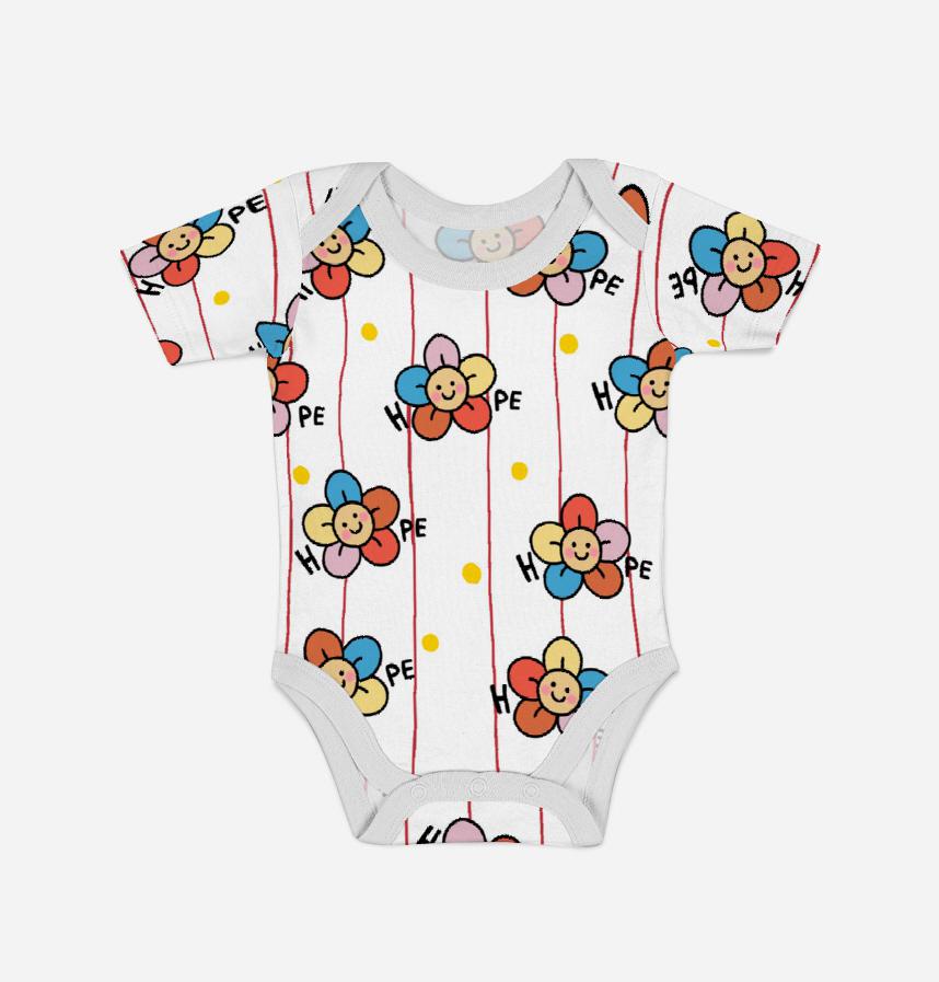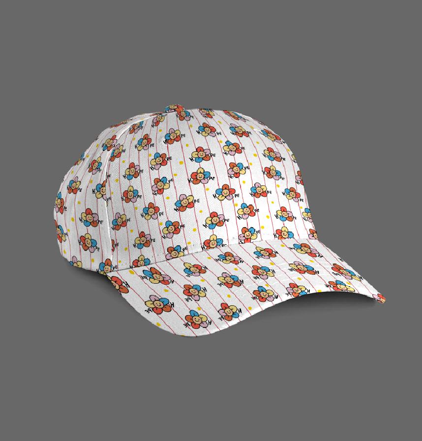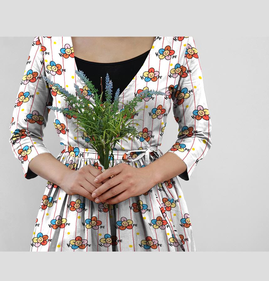 Round floral pattern with lettering (hope) on a thin striped background