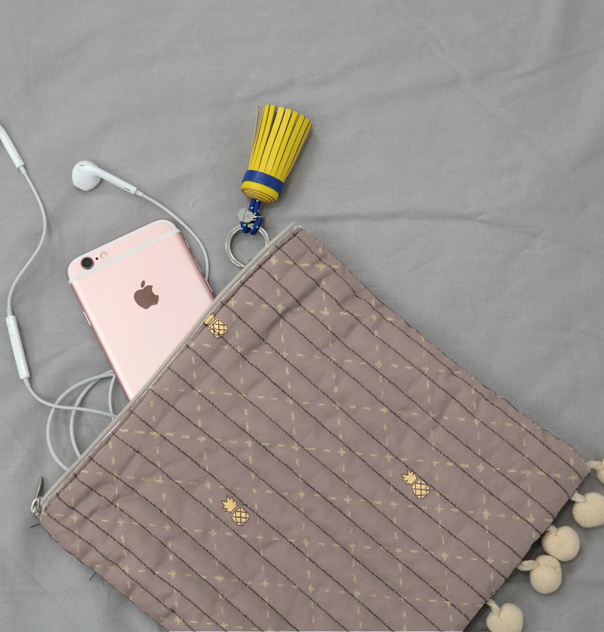 The pineapple and diamond pattern is drawn with loose lines using colored pencils, giving it a cute impression.