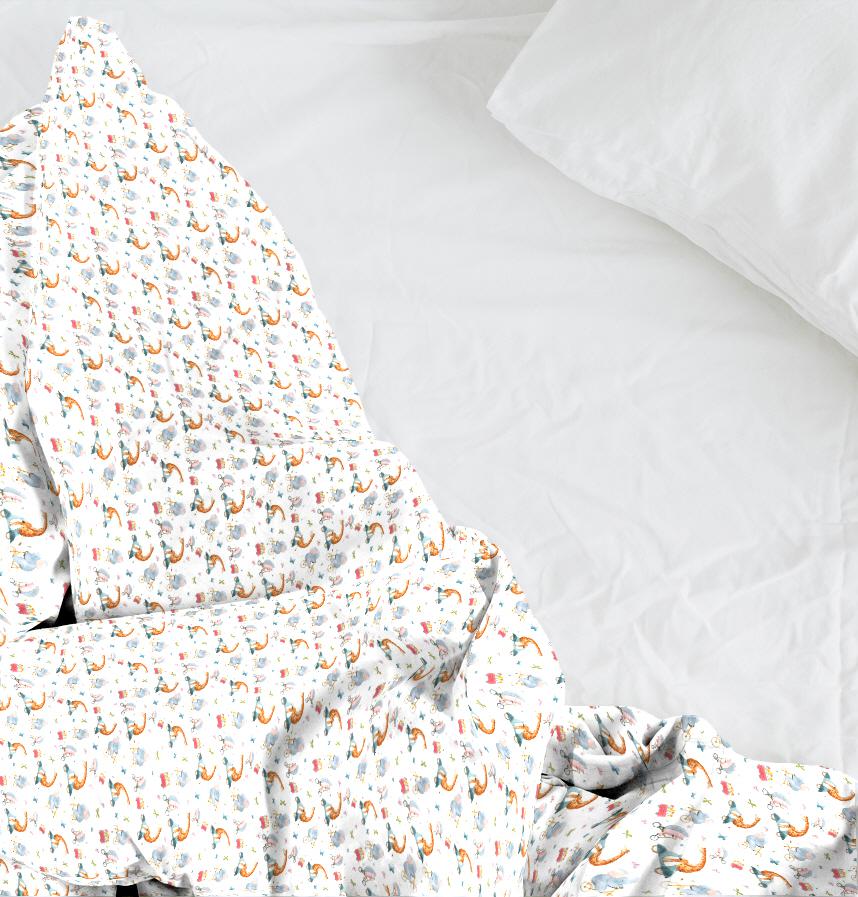This pattern features various animals having fun riding bicycles. It features an elephant, a giraffe, and a hedgehog drawn in watercolor style, and the bright colors and cute characters create a lively atmosphere. The background features butterflies and flowers to emphasize the beauty of nature.