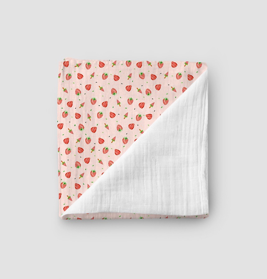 Design infomation Strawberries and watermelon ice cream drawn with colored pencils are freely placed.