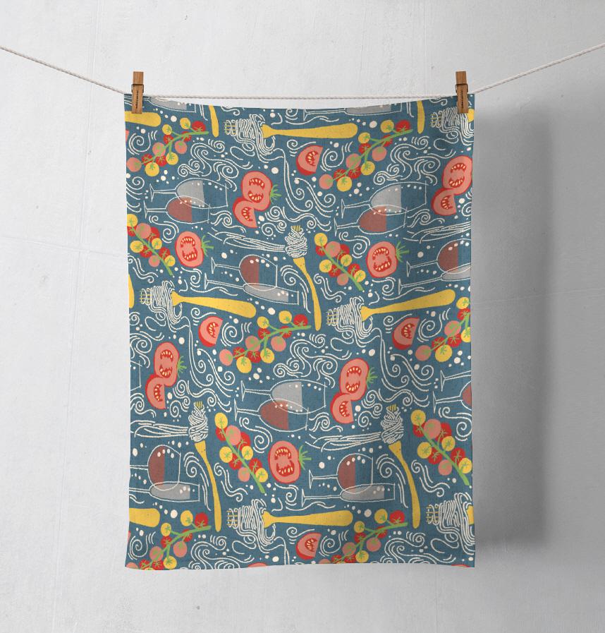 Pasta and tomatoes, champagne and wine. This design evokes the luxurious experience of an Italian dinner.