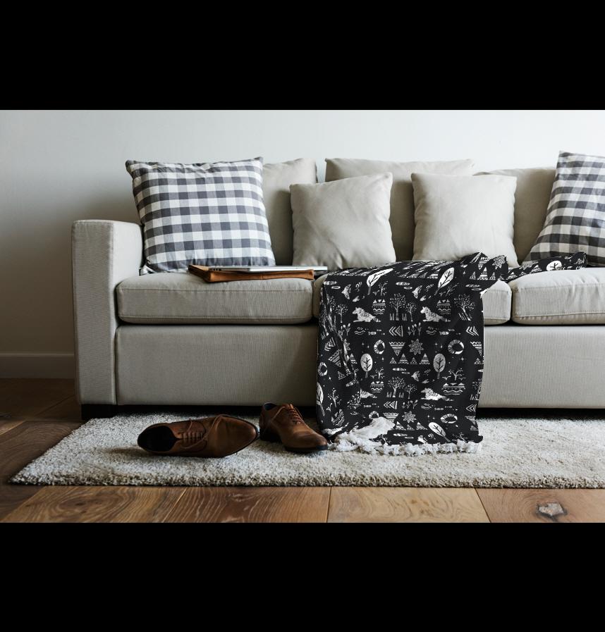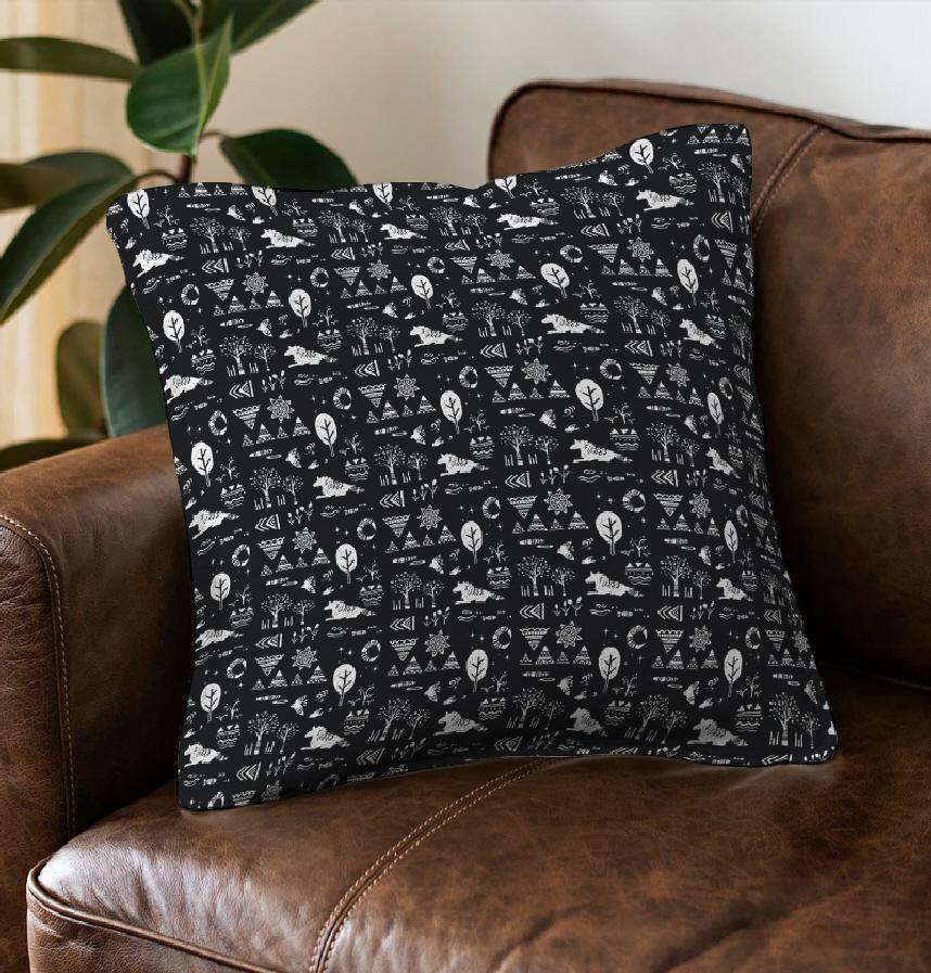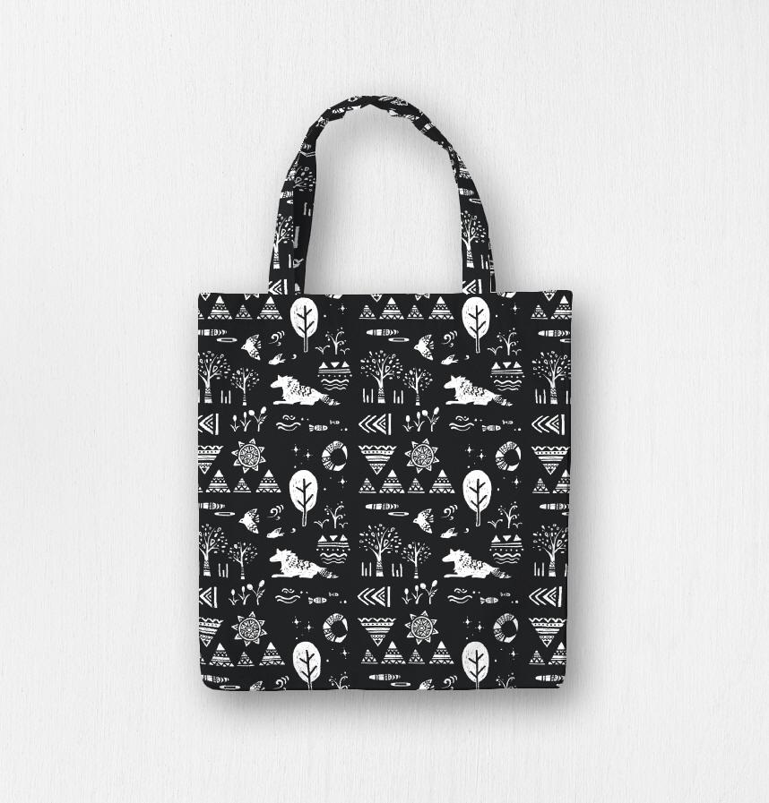 It's a Nordic design that combines the forest where wolves and birds live with ethnic patterns