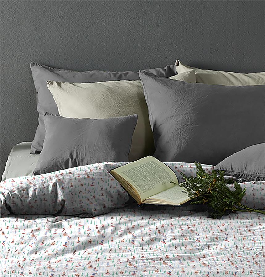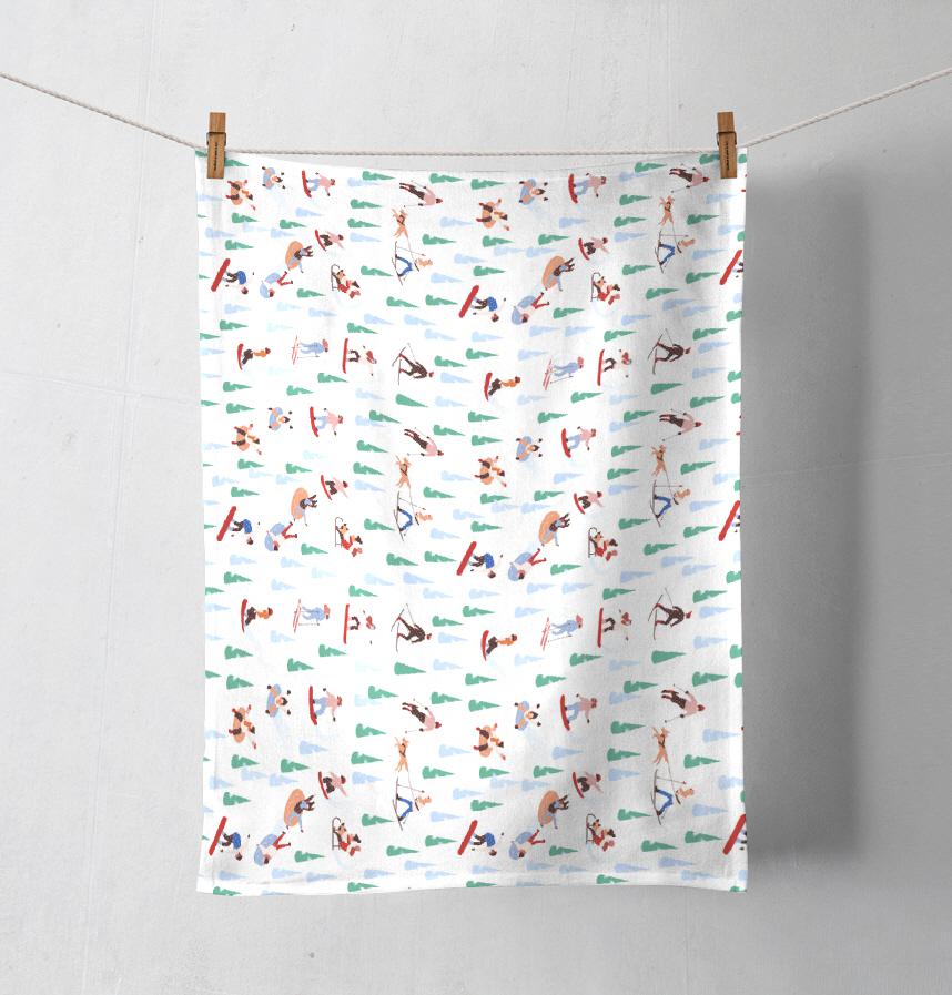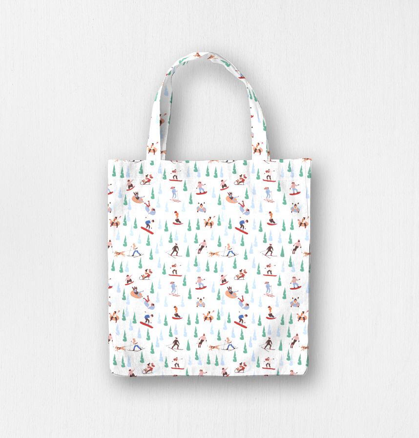 This pattern depicts people enjoying various winter sports in a snowy winter landscape. It features people doing various activities such as skiing, snowboarding, sledding, and tubing, and the surrounding snow-covered trees convey a lively and warm winter atmosphere.