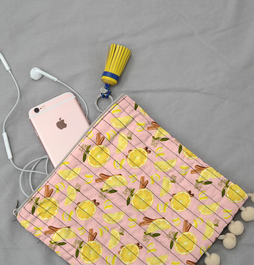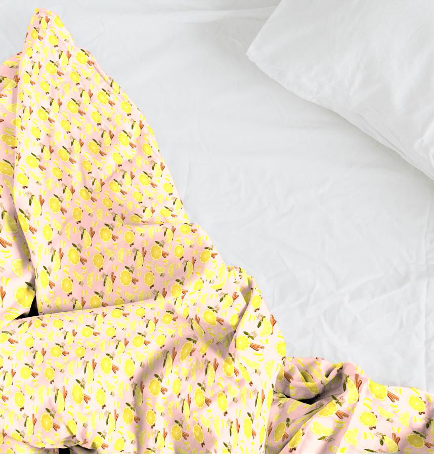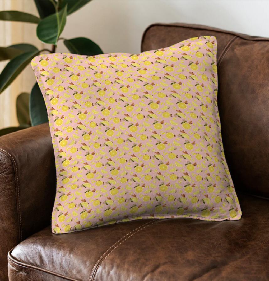 This pattern is refreshing and bright with a mix of lemons, cinnamon, and lemon zest. The pink background makes the elements pop, creating a warm and cheerful atmosphere.