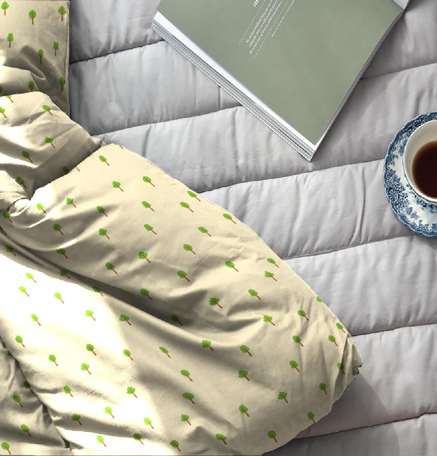 The whisper pattern of the small forest contains the tranquility and peace of nature. On a soft beige background, small trees of various shapes are regularly arranged, giving the feeling of small trees in the forest coming together in harmony. Each tree is simply expressed with green leaves and brown stems, symbolizing the vitality of nature.