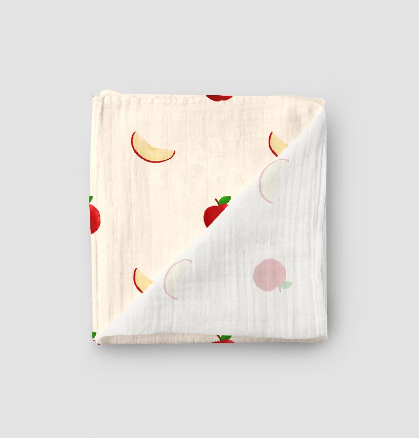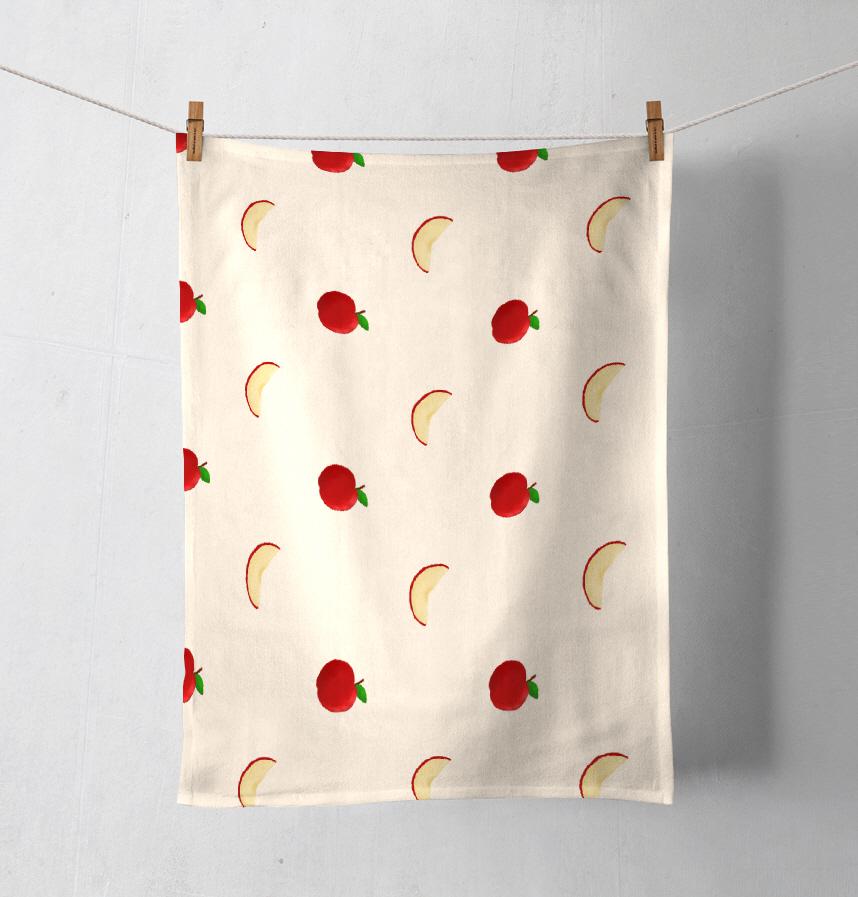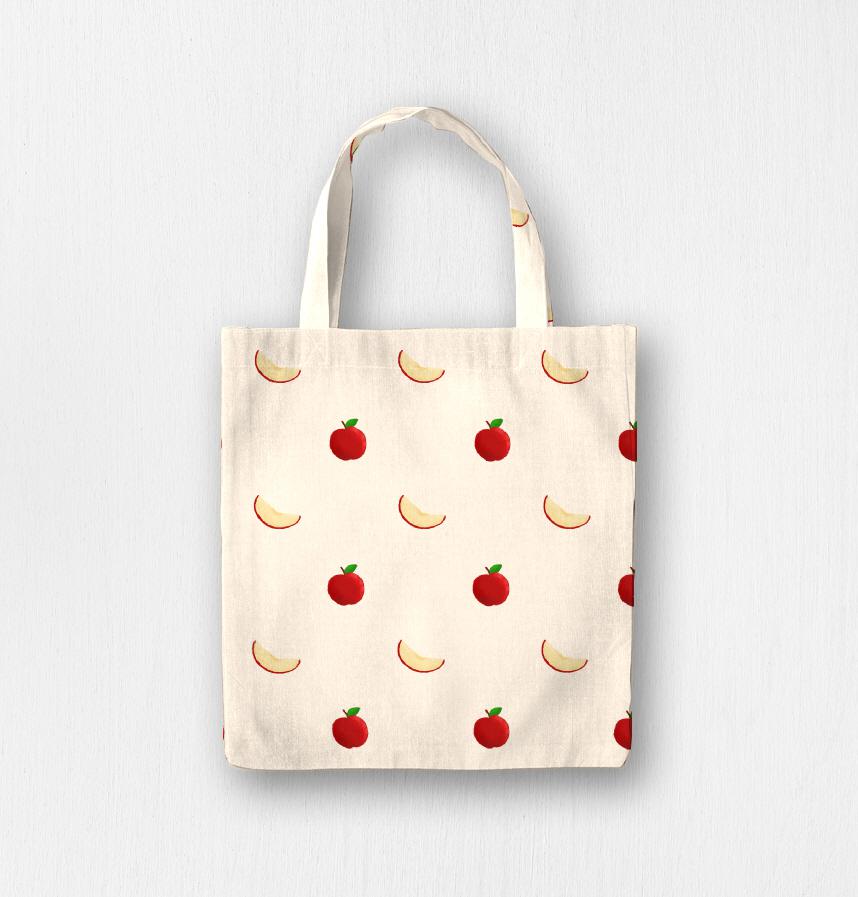 This pattern depicts a ripe apple and an apple cut into a half-moon shape.