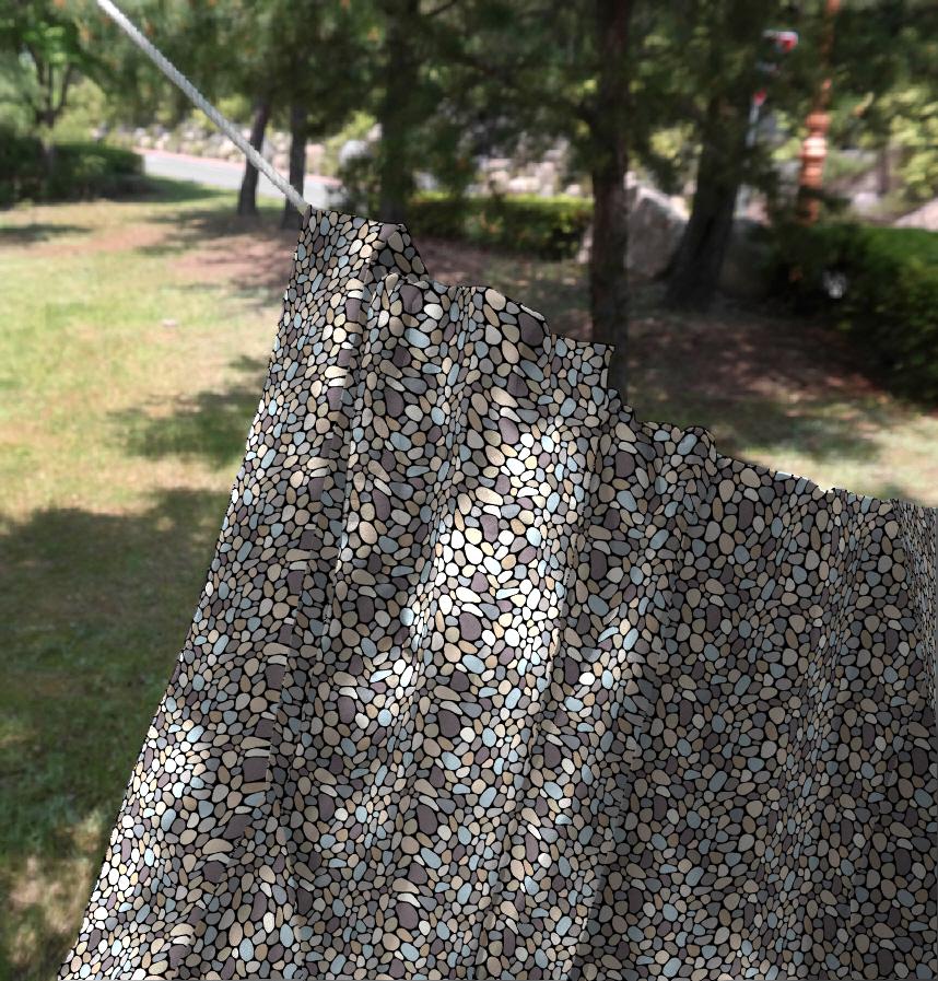 It is paved with beautiful riverbank stones. There are three different patterns, with no top, bottom, left or right design.