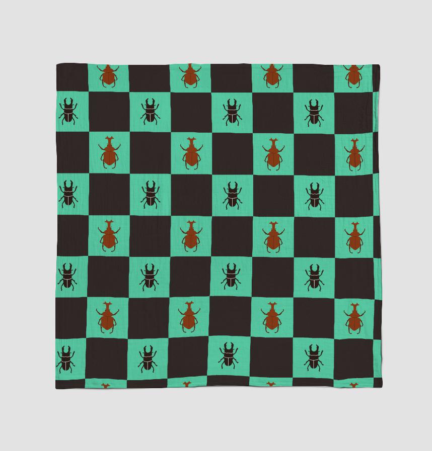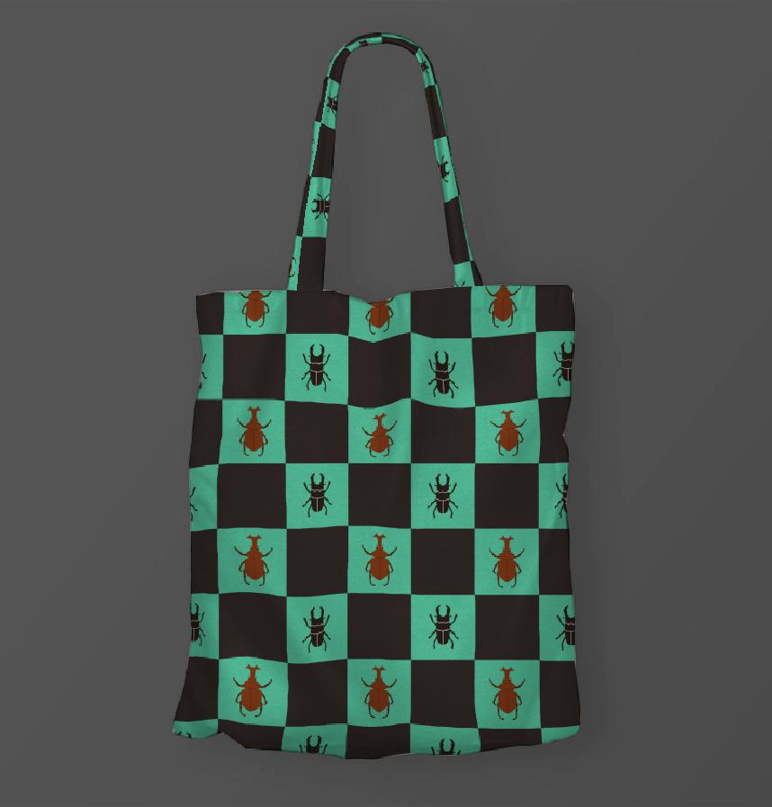 The design features a rhinoceros beetle and a stag beetle.
