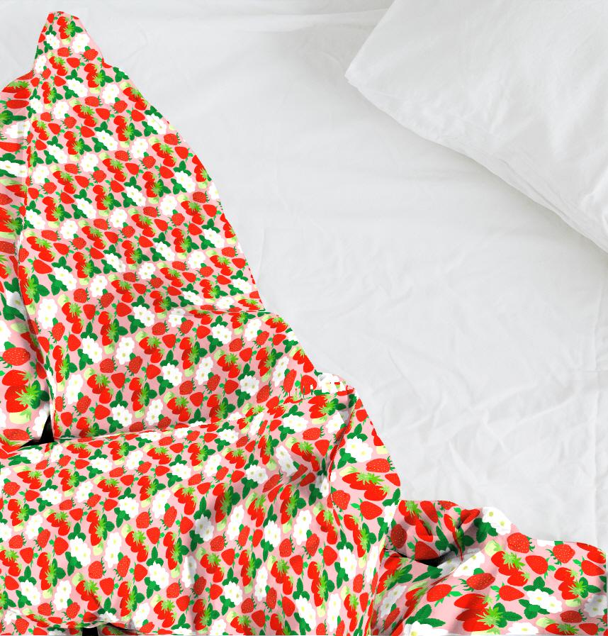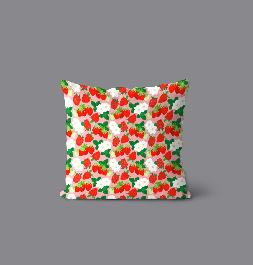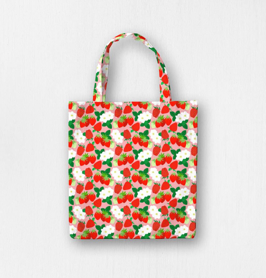 It is a pattern full of strawberries and strawberry flowers.