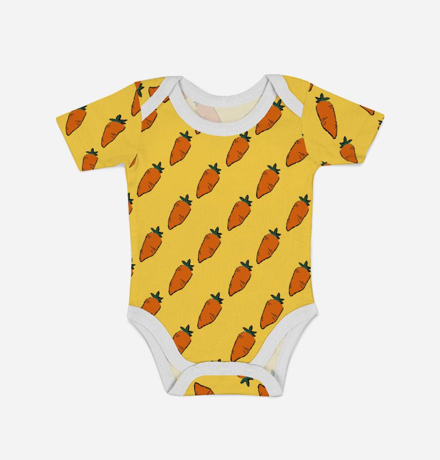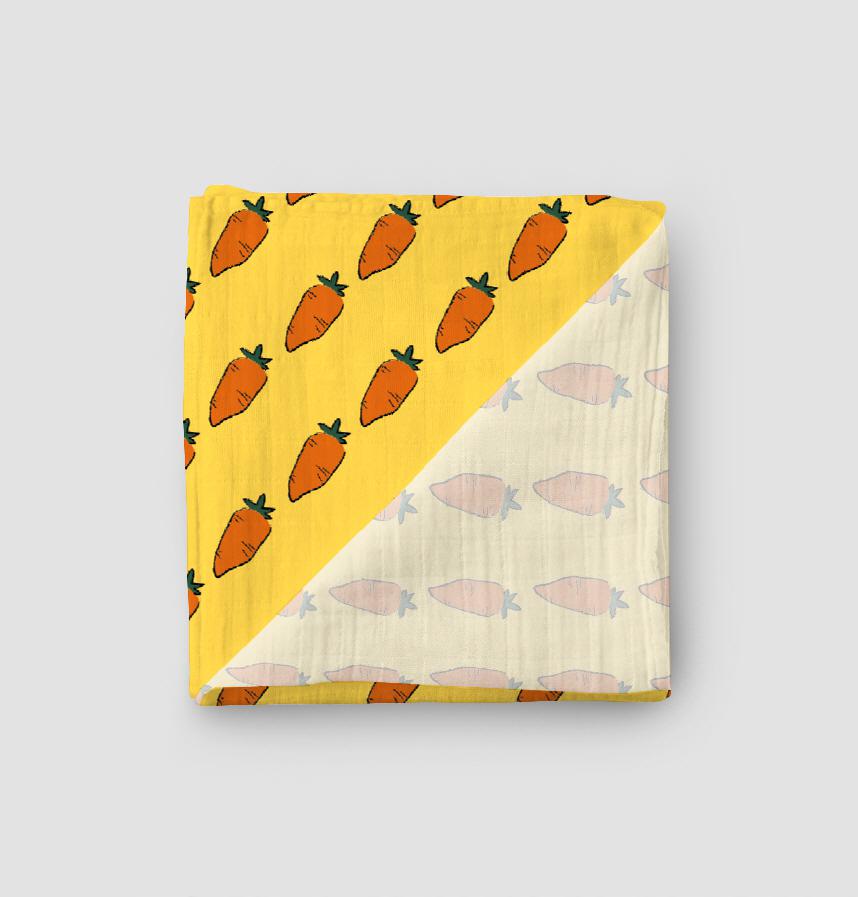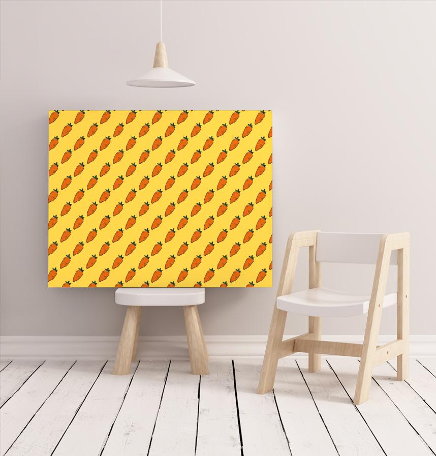 It shows a cute image with a hand-drawing carrot pattern and created a comfortable mood by using warm colors overall.