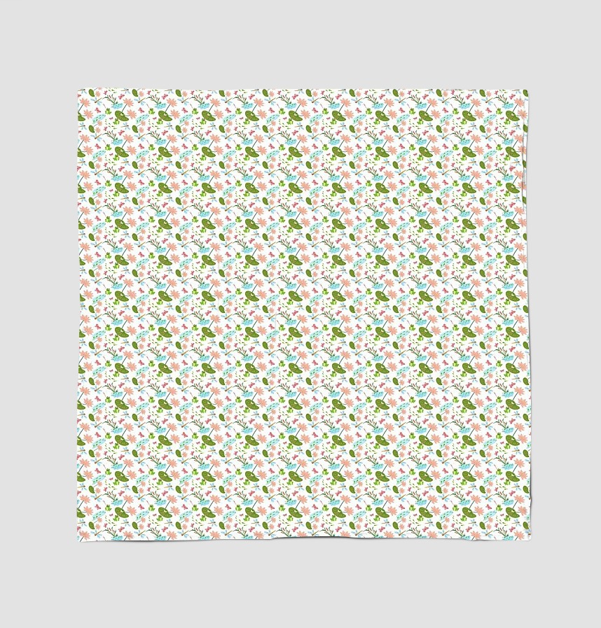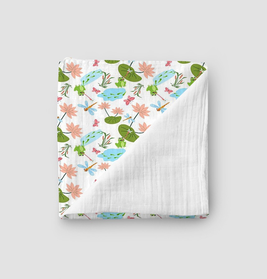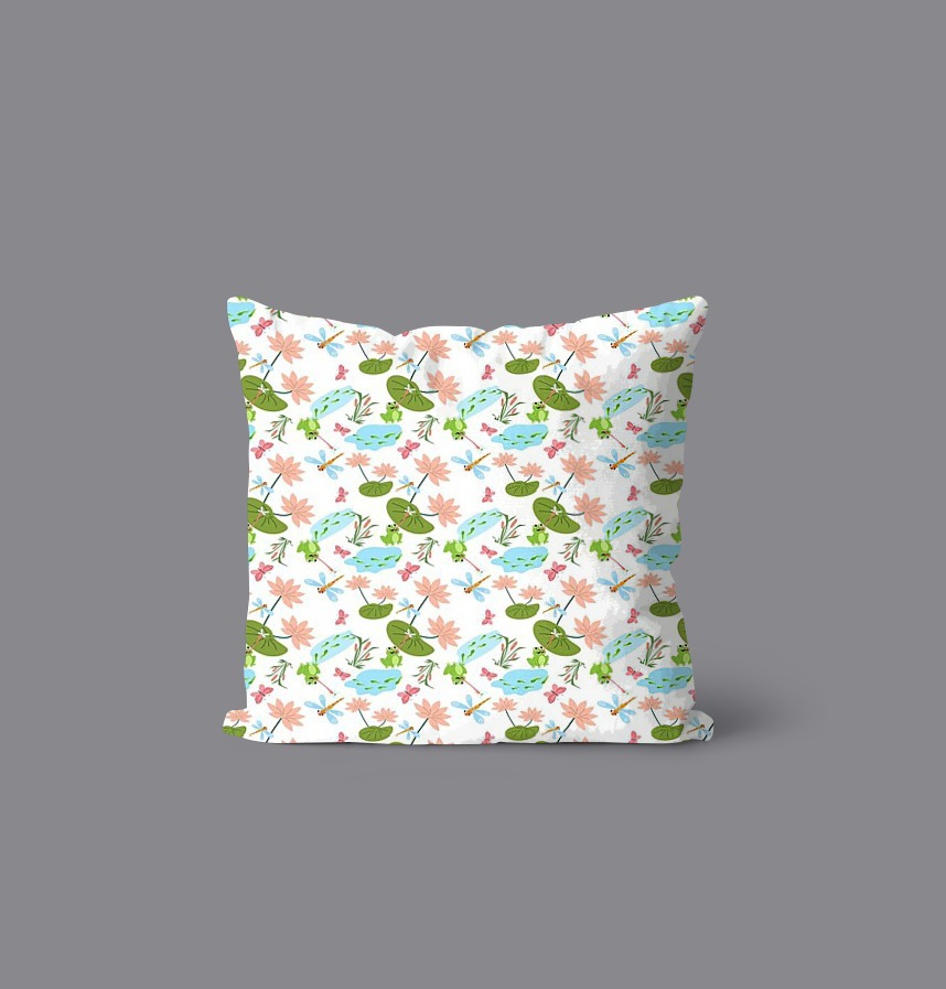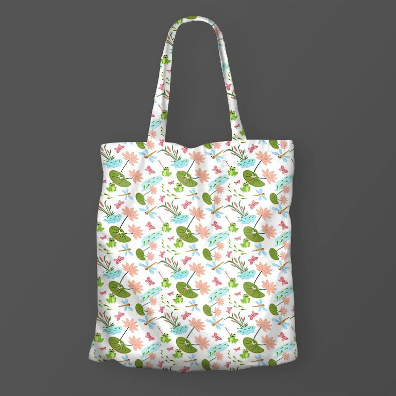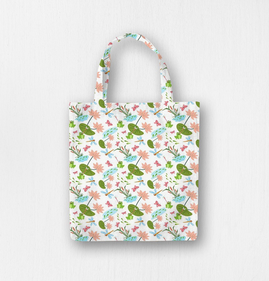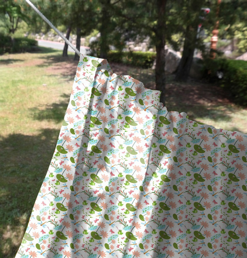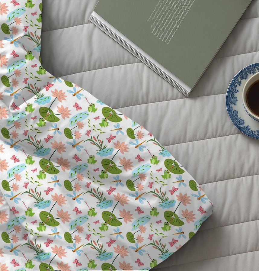 This pattern captures the warm and friendly atmosphere of the pond's ecosystem, including lotus leaves, flowers, frogs, dragonflies, and butterflies. The bright, soft colors and harmonious arrangement of natural elements convey the peaceful beauty of nature. It's particularly well-suited for content about children or nature and life.