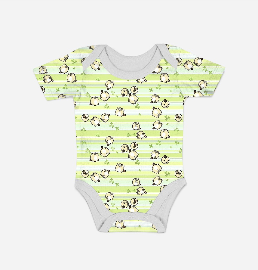 It is a cute design with a raccoon raccoon dog and lucky four-leaf clover scattered around.